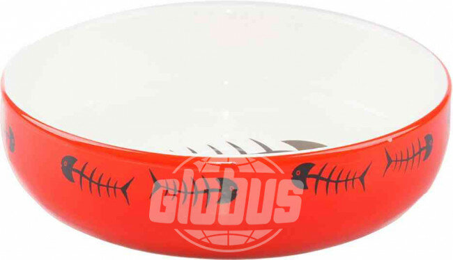 Mr.Kranch миска керамическая для кошек, 300 мл, красно-белая с рыбками