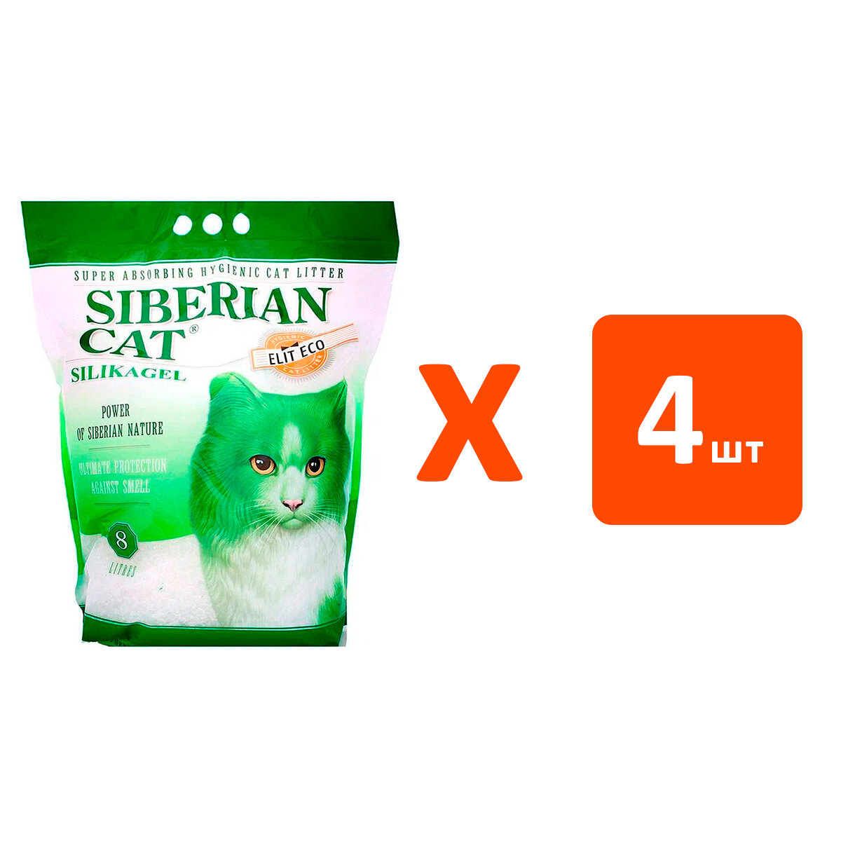Купить Сибирская кошка элитный ЭКО наполнитель силикагелевый для туалета кошек (8 л х 4 шт)