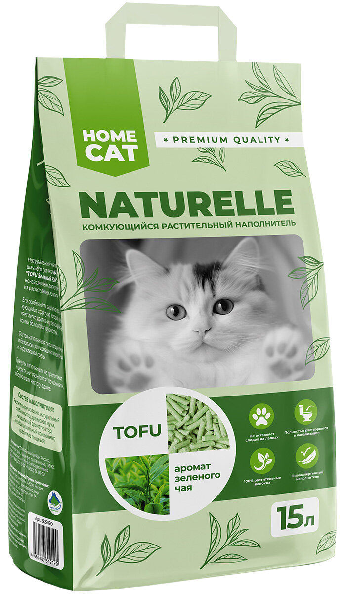 Купить Наполнитель комкующийся Homecat Naturelle Tofu, зеленый чай, 15 л/6 кг