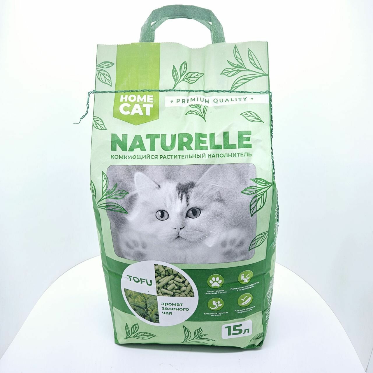 HOMECAT NATURELLE Зеленый чай 15 л комкующийся растительный наполнитель для кошачьих туалетов с ароматом зеленого чая