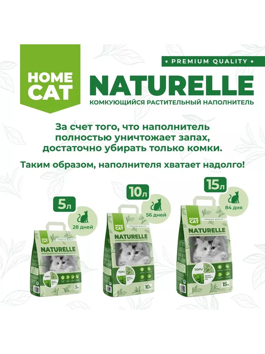 HOMECAT NATURELLE Зеленый чай 5 л комкующийся растительный наполнитель для кошачьих туалетов с ароматом зеленого чая
