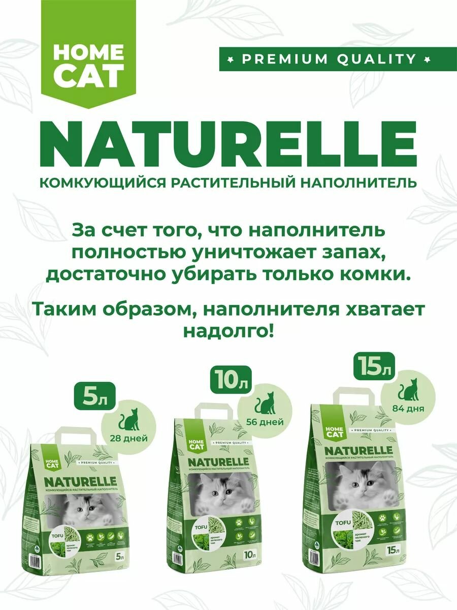 HOMECAT NATURELLE Зеленый чай 5 л комкующийся растительный наполнитель для кошачьих туалетов с ароматом зеленого чая