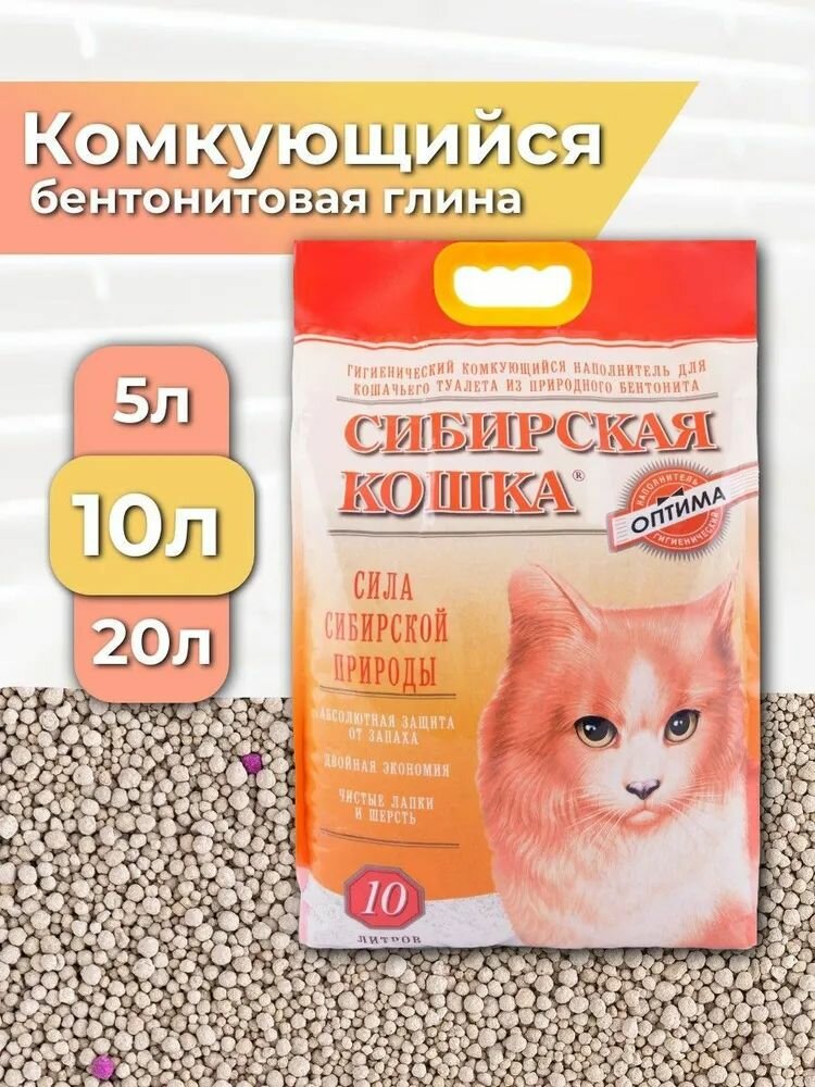Наполнитель для кошачьего туалета 10л Оптима СИБИРСКАЯ КОШКА комкующийся гранулированный бентонит