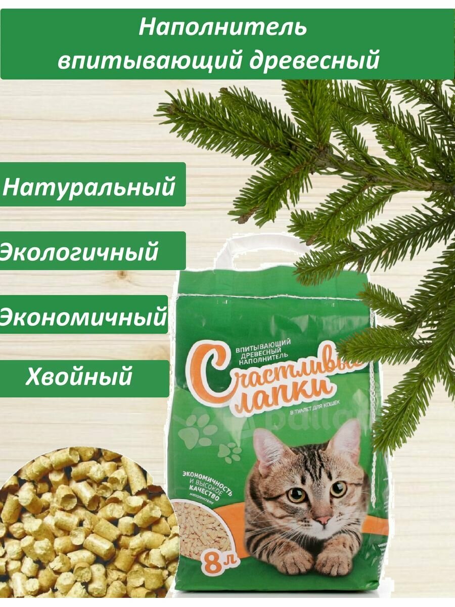 Счастливые лапки – наполнитель древесный для туалета кошек (8 л) интересное: