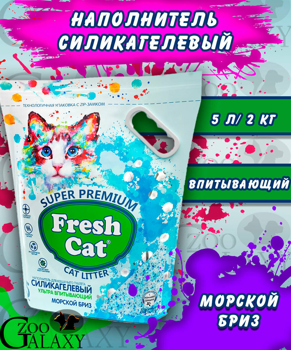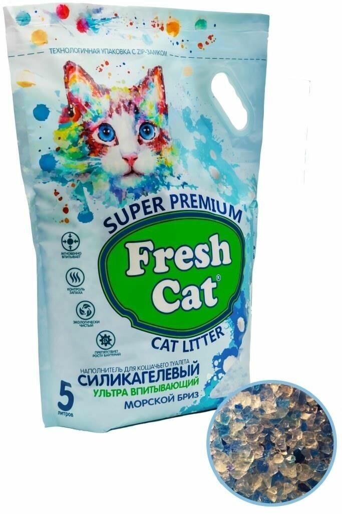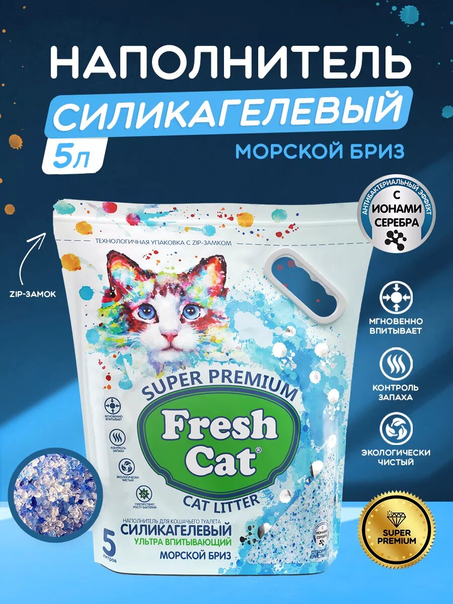 FRESH CAT впитывающий силикагелевый наполнитель, с ароматом "Морской бриз", 2кг/5л