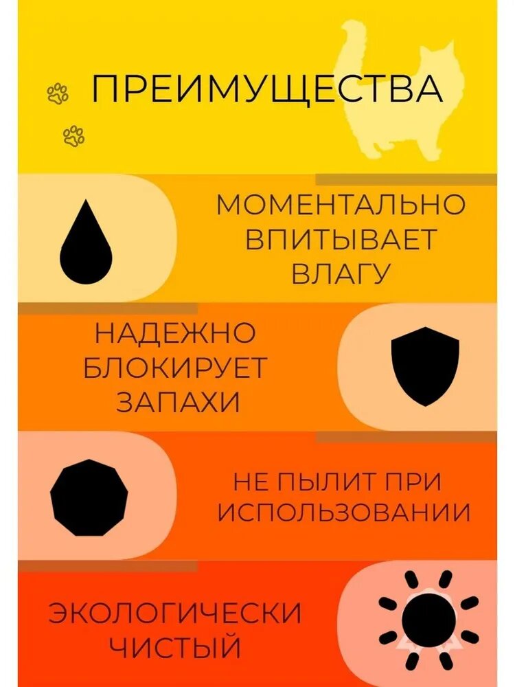 | Особенности | ароматизированный / биоразлагаемый / гипоаллергенный / гранулированный / для котят / контроль запаха / с защитой от запаха / смываемый |