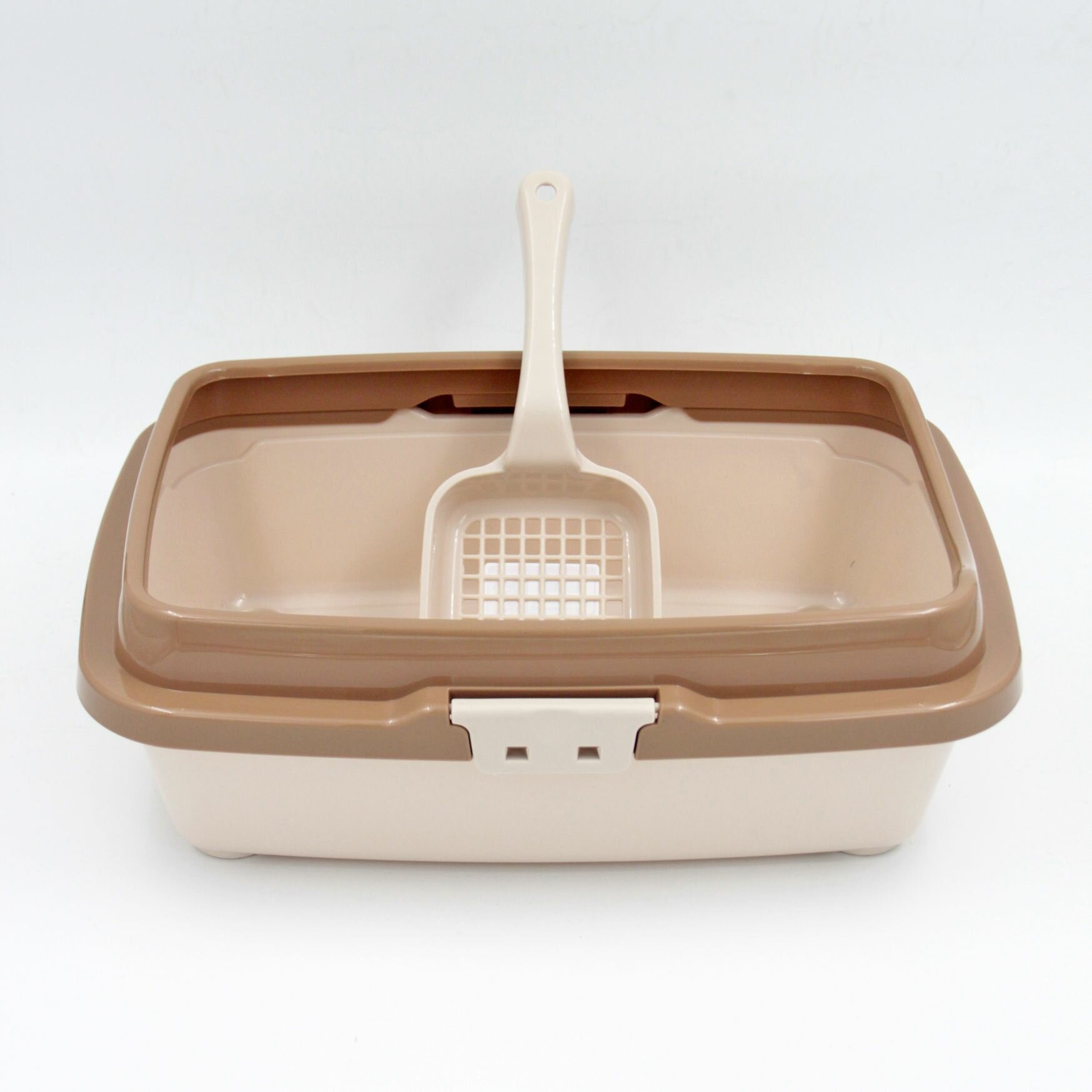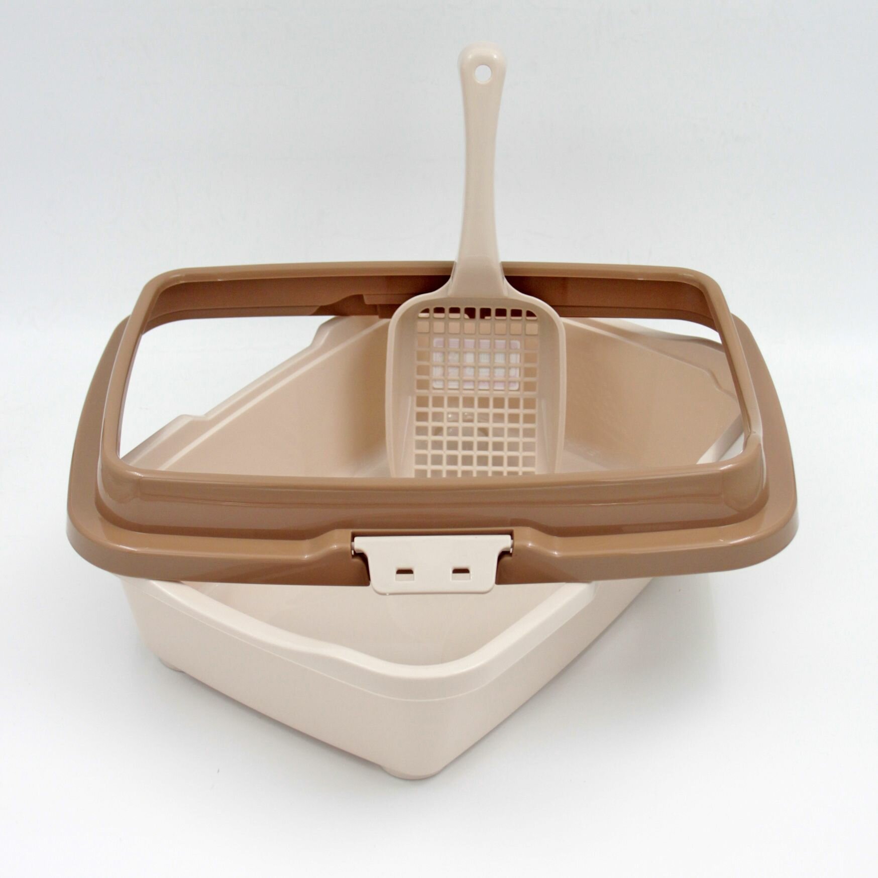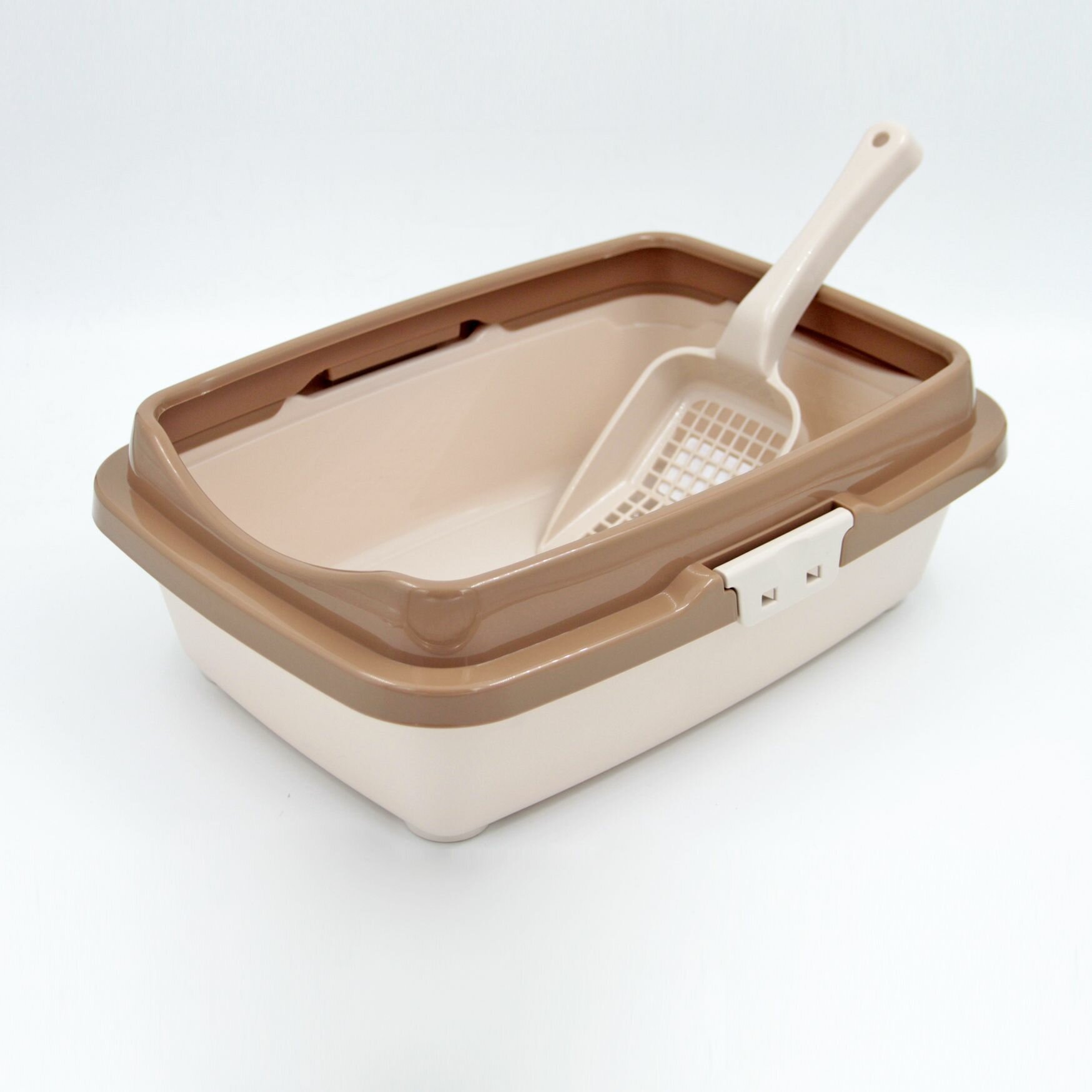 Лоток для котят DD Style, молочно-кофейного цвета, с бортиком и лопаткой, полипропилен