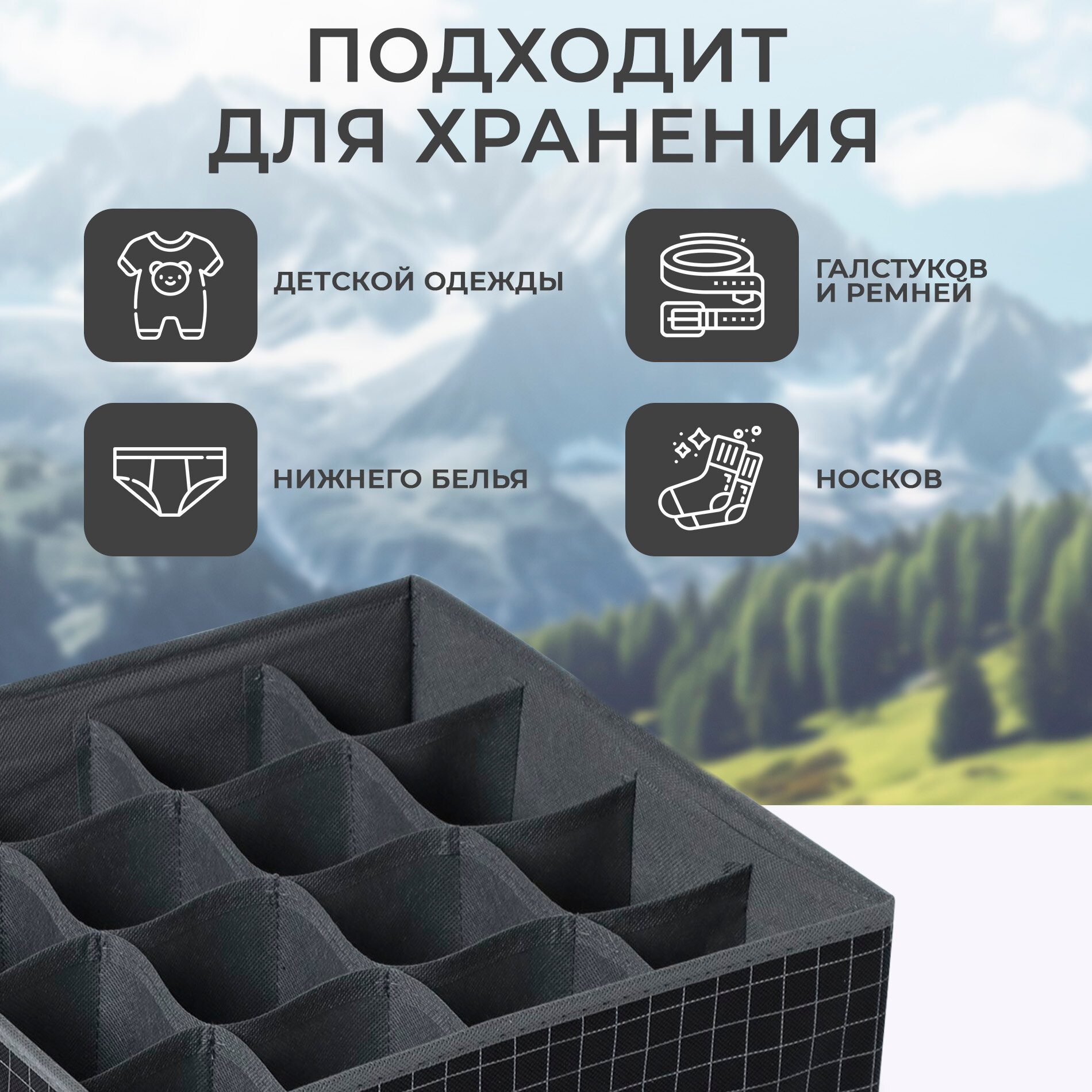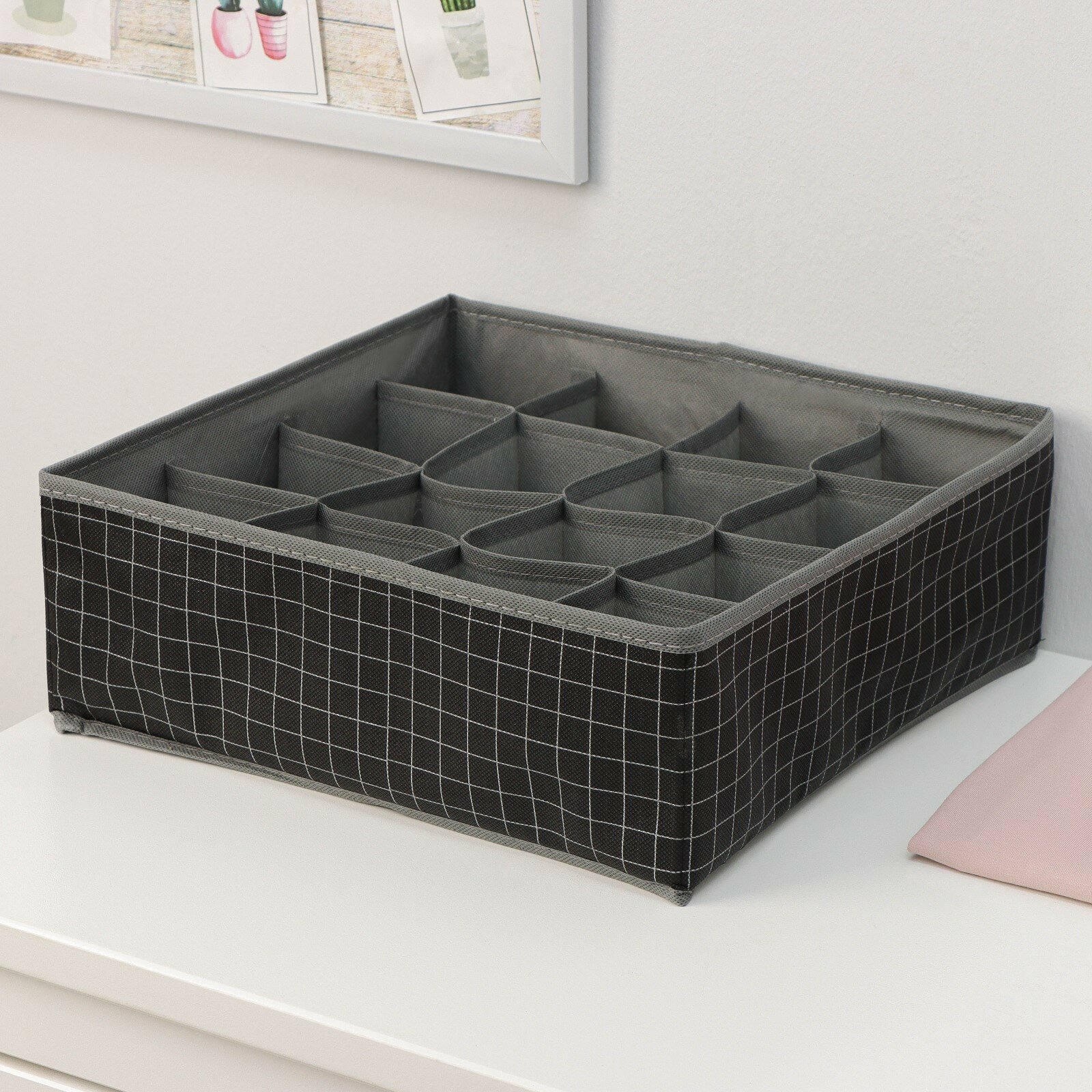 Органайзер для хранения белья "Кло", 16 ячеек, 32x32x12 см, цвет чёрный
