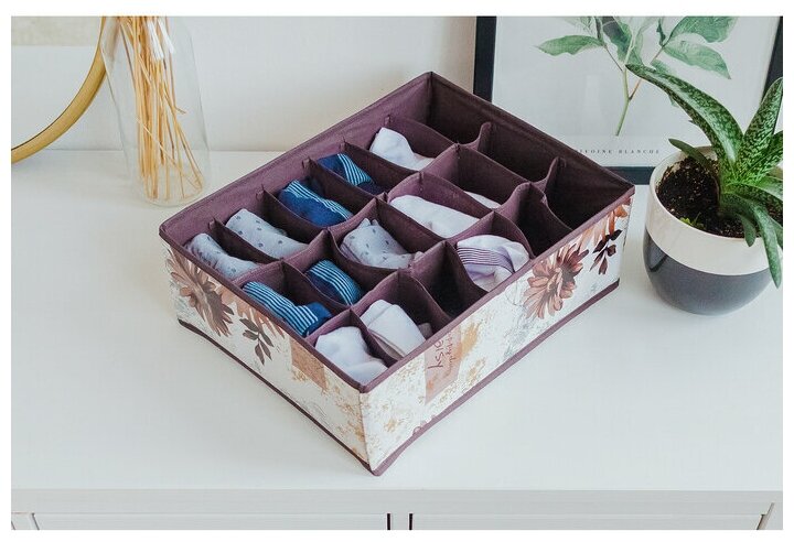 Органайзер для хранения белья Доляна «Астра», 24 отделения, 38×30×12 см, цвет коричневый
