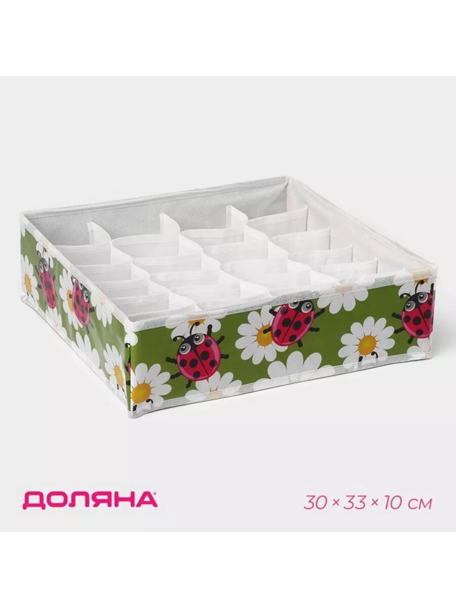 Купить Органайзер для хранения белья Доляна «Божьи коровки», 24 ячейки, 30×33×10 см, цвет зелёный