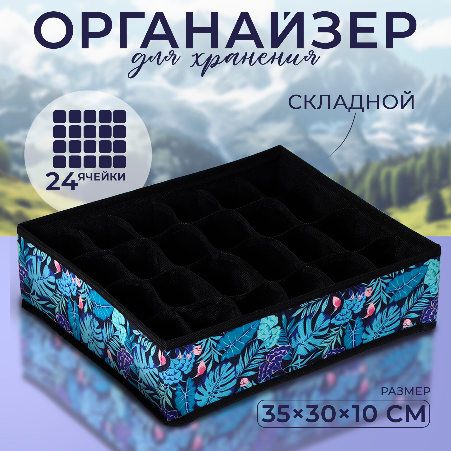 Органайзер для хранения белья «Тропики», 24 ячейки, 35×30×10 см, цвет синий
