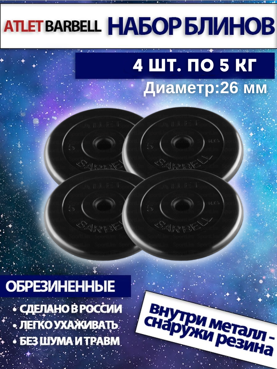 Купить Комплект дисков Атлет (4 по 5 кг) 26мм