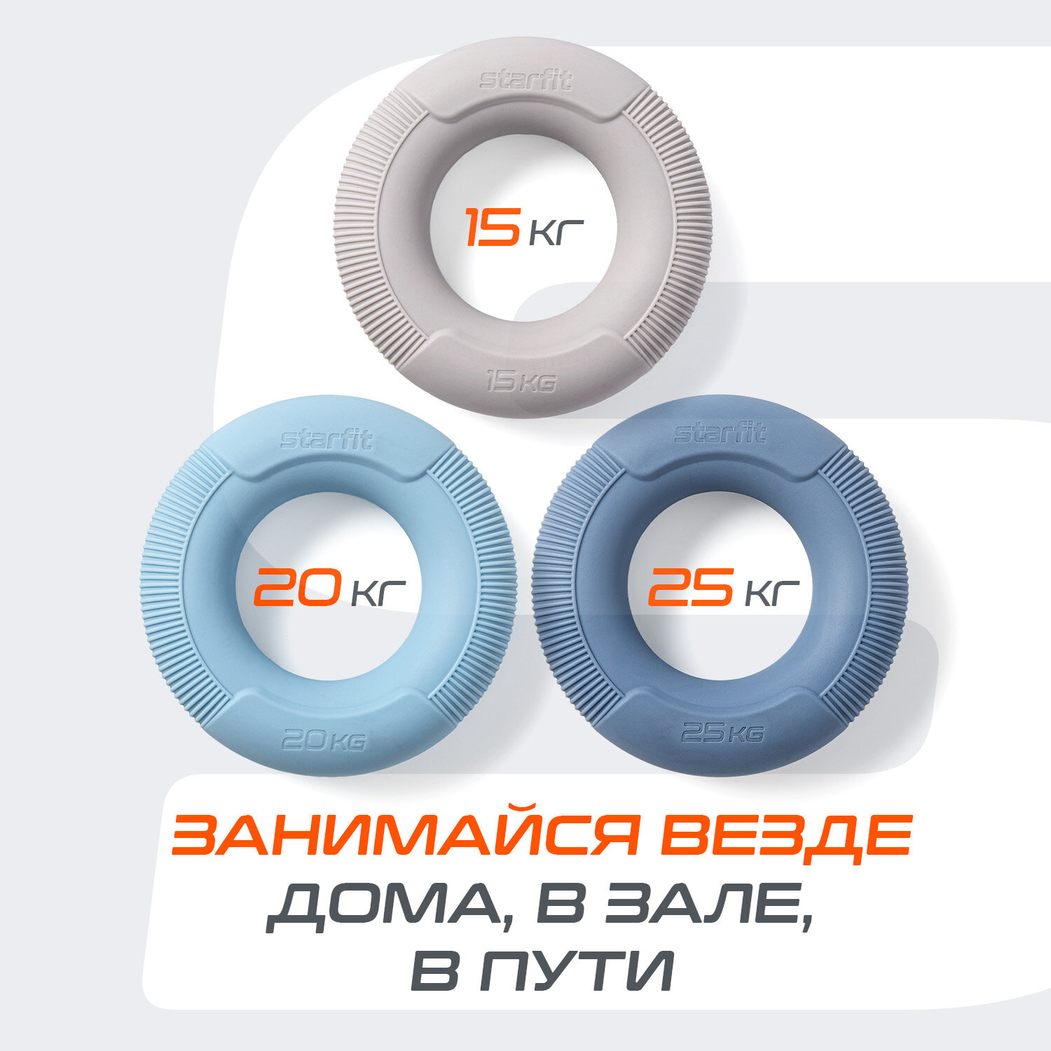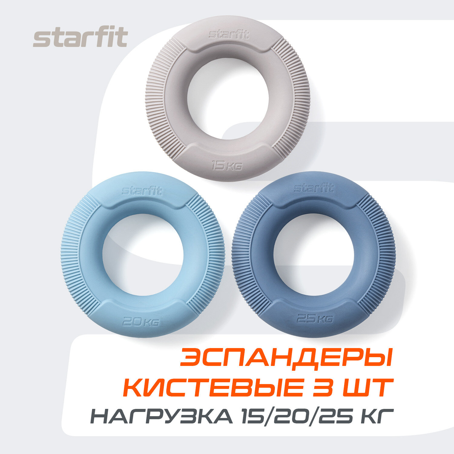 Купить Эспандеры кистевые STARFIT ES-406 кольцо, силикагель, d=8,8 см, 15, 20, 25 кг, 3 шт.