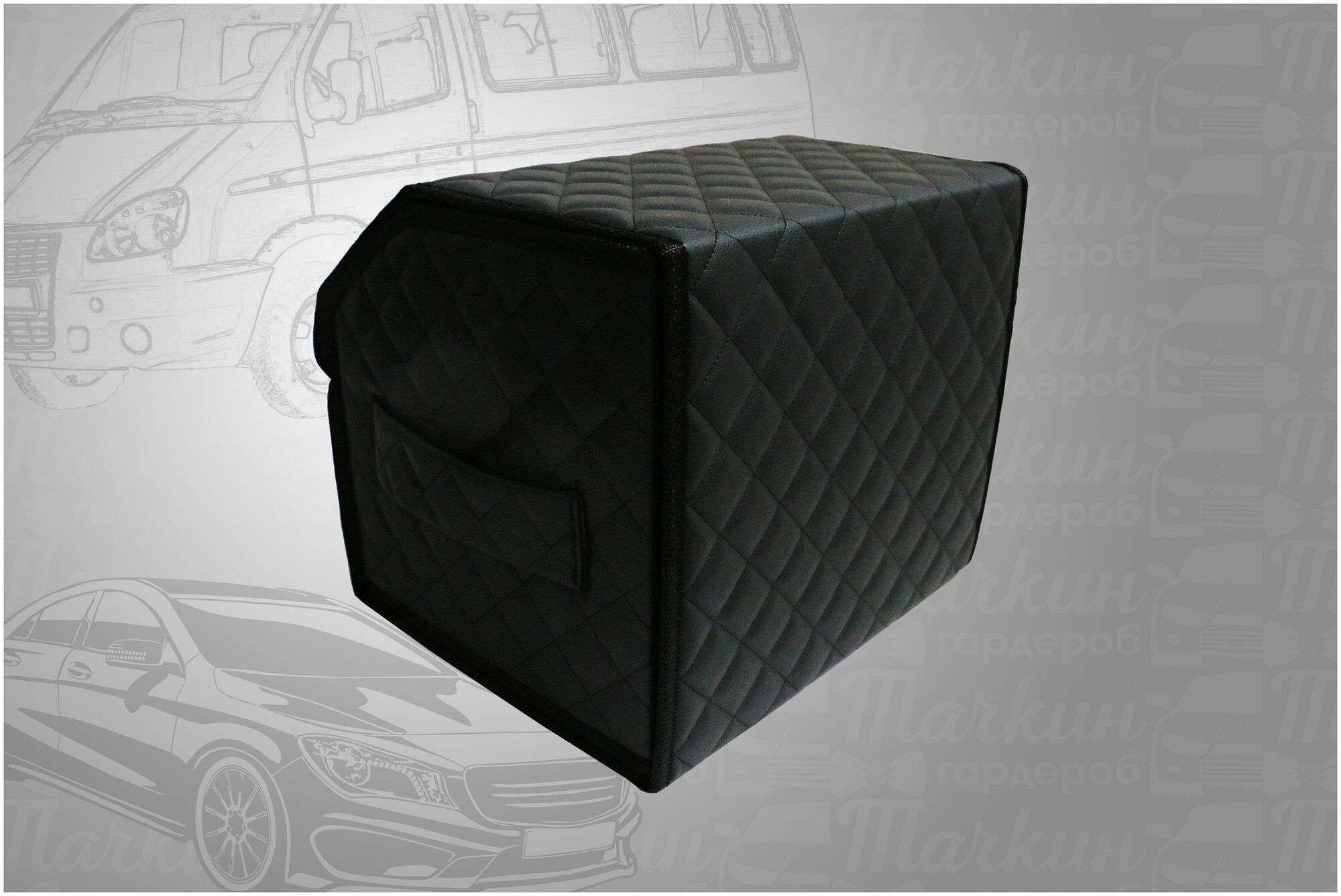 Высокий Саквояж из экокожи в багажник авто премиум-класса/ Органайзер 35*30*35 сложный квадрат черный/черн