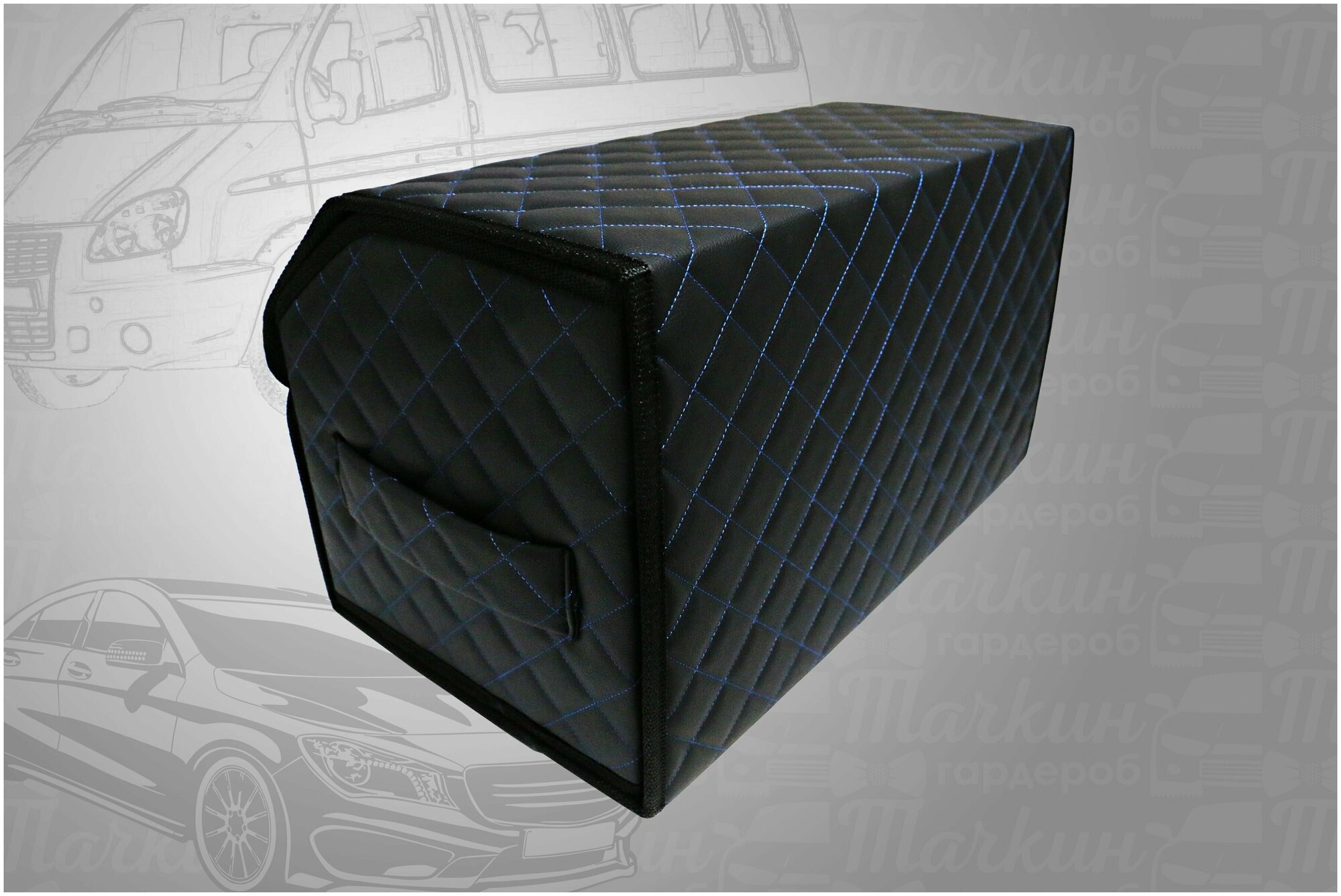 Органайзер для хранения для автомобиля 50х30х30 рисунок фигурный ромб черный/строчка синяя/саквояж/бокс/кофр для авто