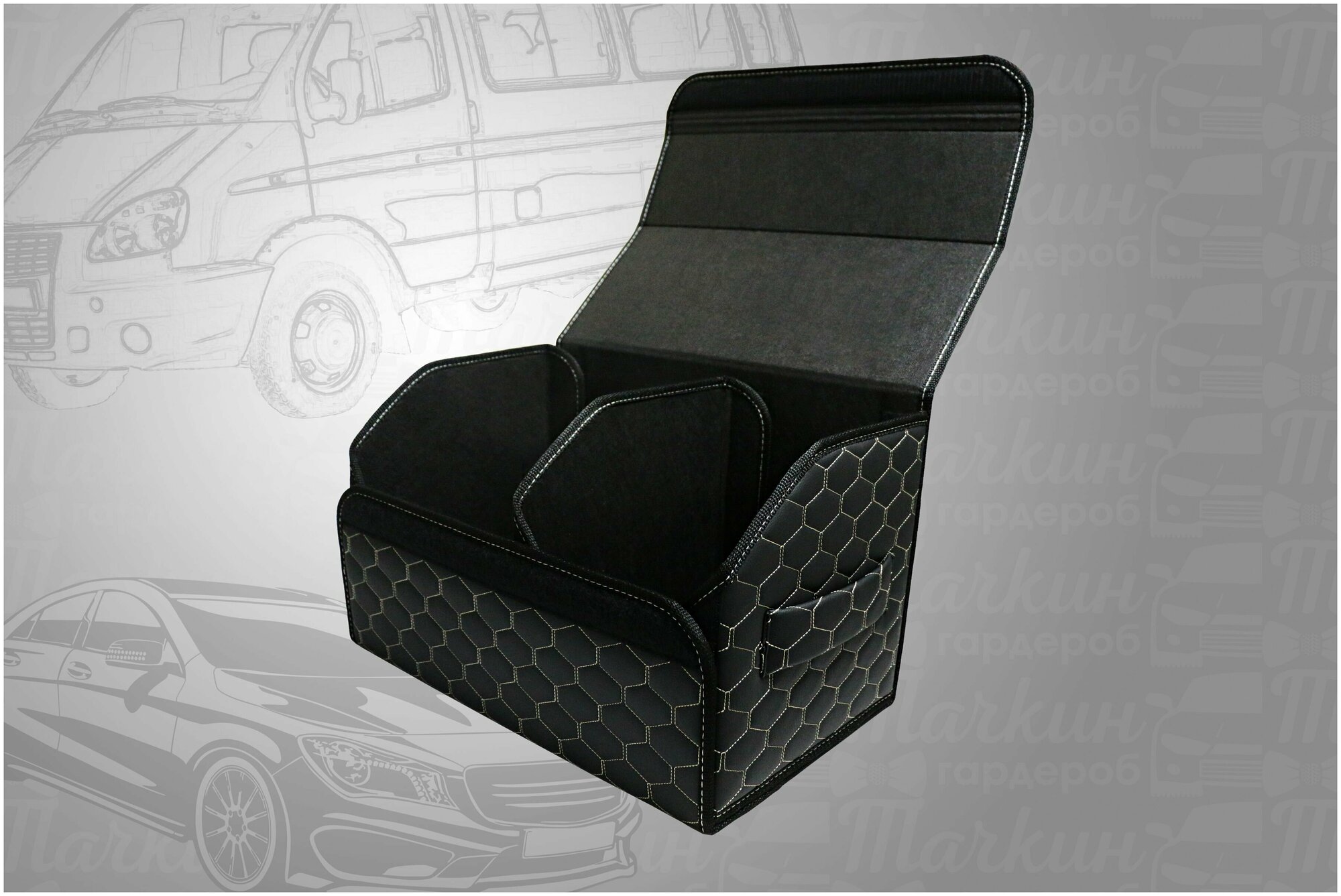 Аксессуары для авто/Органайзер в багажник 35х30х30 рисунок фигурный ромб черный/строчка беж/саквояж/бокс/кофр для авто