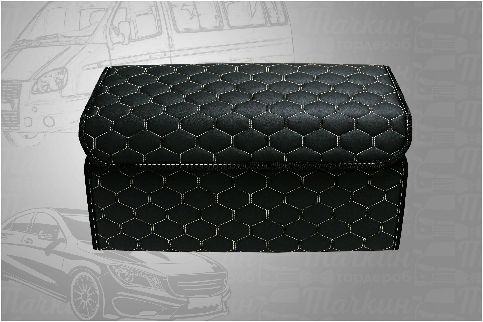 Органайзер в багажник автомобиля 50х30х30 рисунок соты черн/строчка белая/саквояж/бокс/кофр для авто