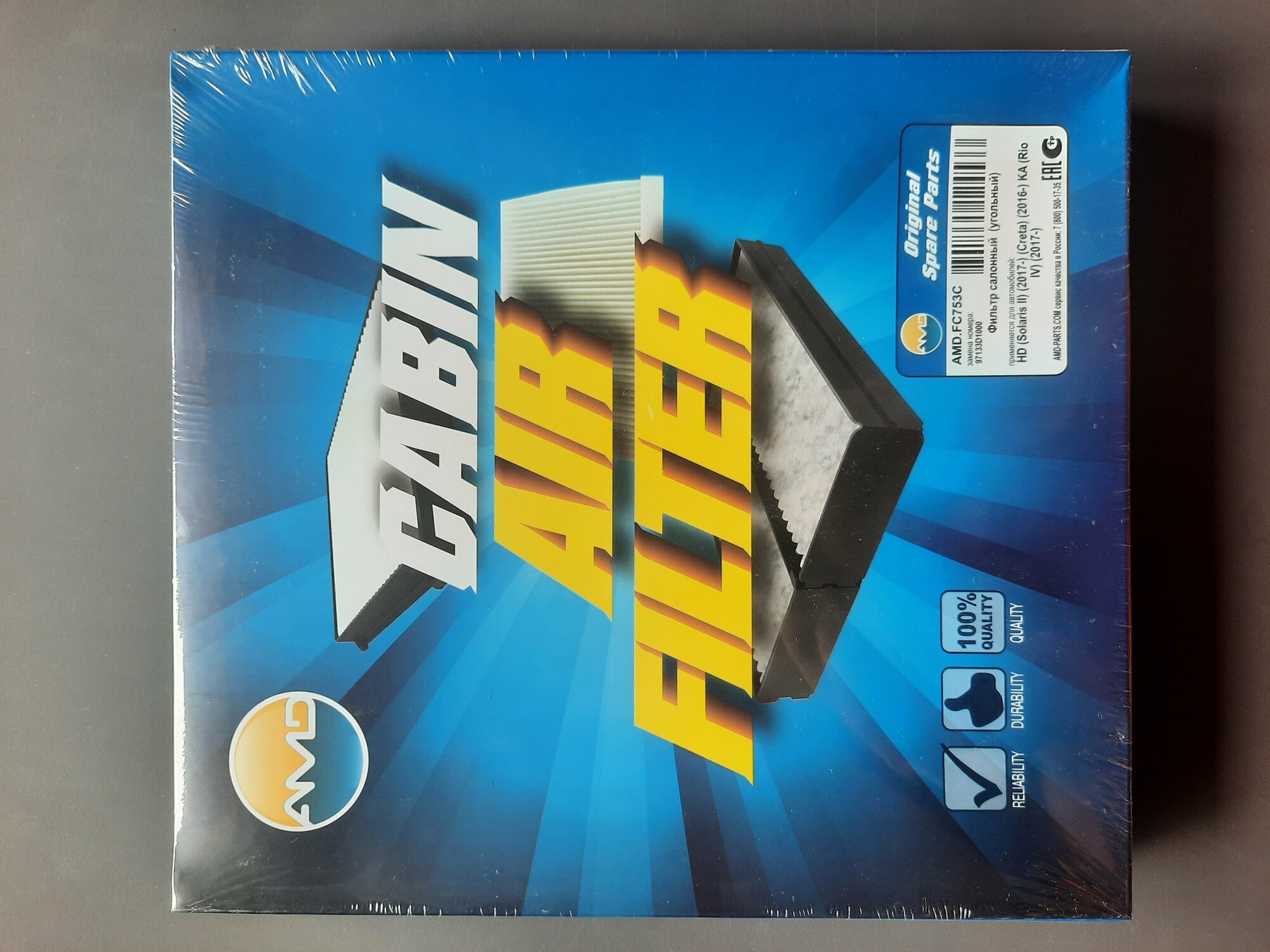 Купить Фильтр салонный угольный 97133-D1000 AMD.FC753C для HYUNDAI Solaris II 2017- Creta 2016- KIA Rio IV 2017- Seltos 2020-