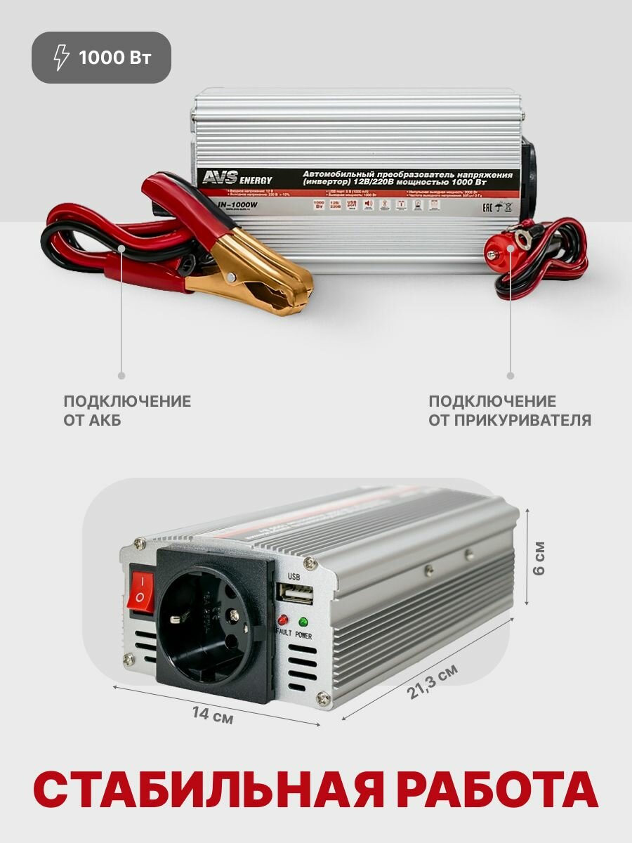 Инвертор Автомобильный! 12/220V In-1000W AVS арт. 43113 интересное: