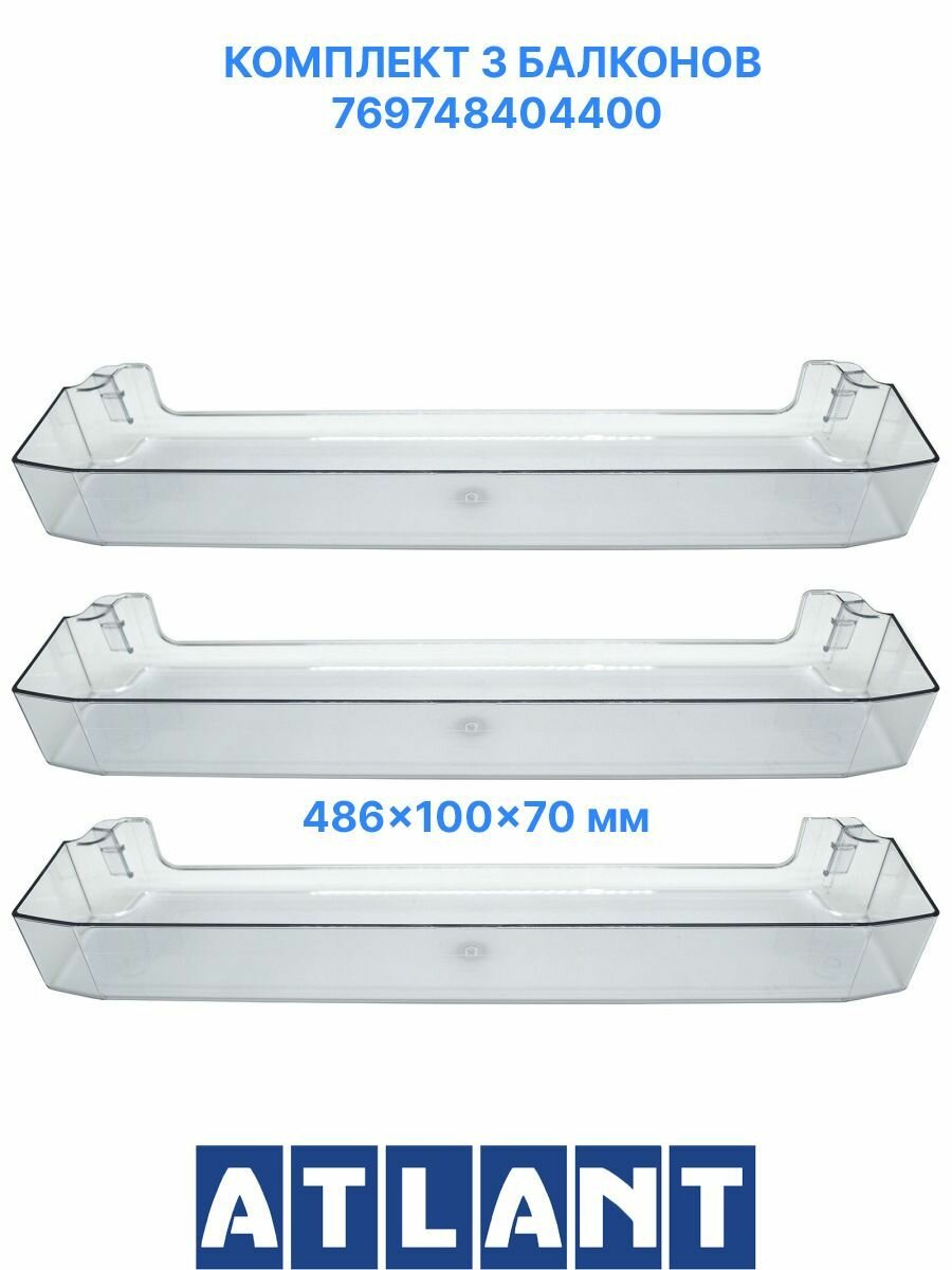 Купить Полка балкон средняя холодильника Атлант 769748404400 (48.6x10x7), барьер в дверь - 3 штуки
