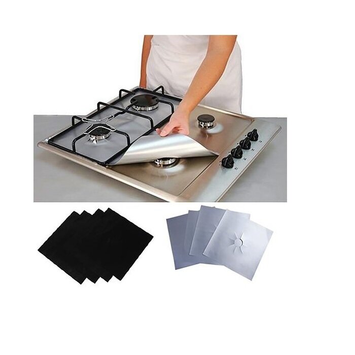 Многоразовое защитное покрытие для газовой плиты (набор 4 шт) /Защитные накладки на плиту (4шт), цвет черный