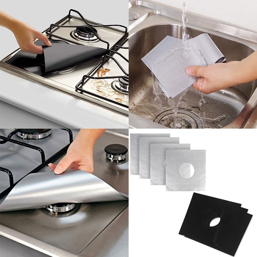 Купить Многоразовое защитное покрытие для газовой плиты (набор 4 шт) /Защитные накладки на плиту (4шт), цвет черный