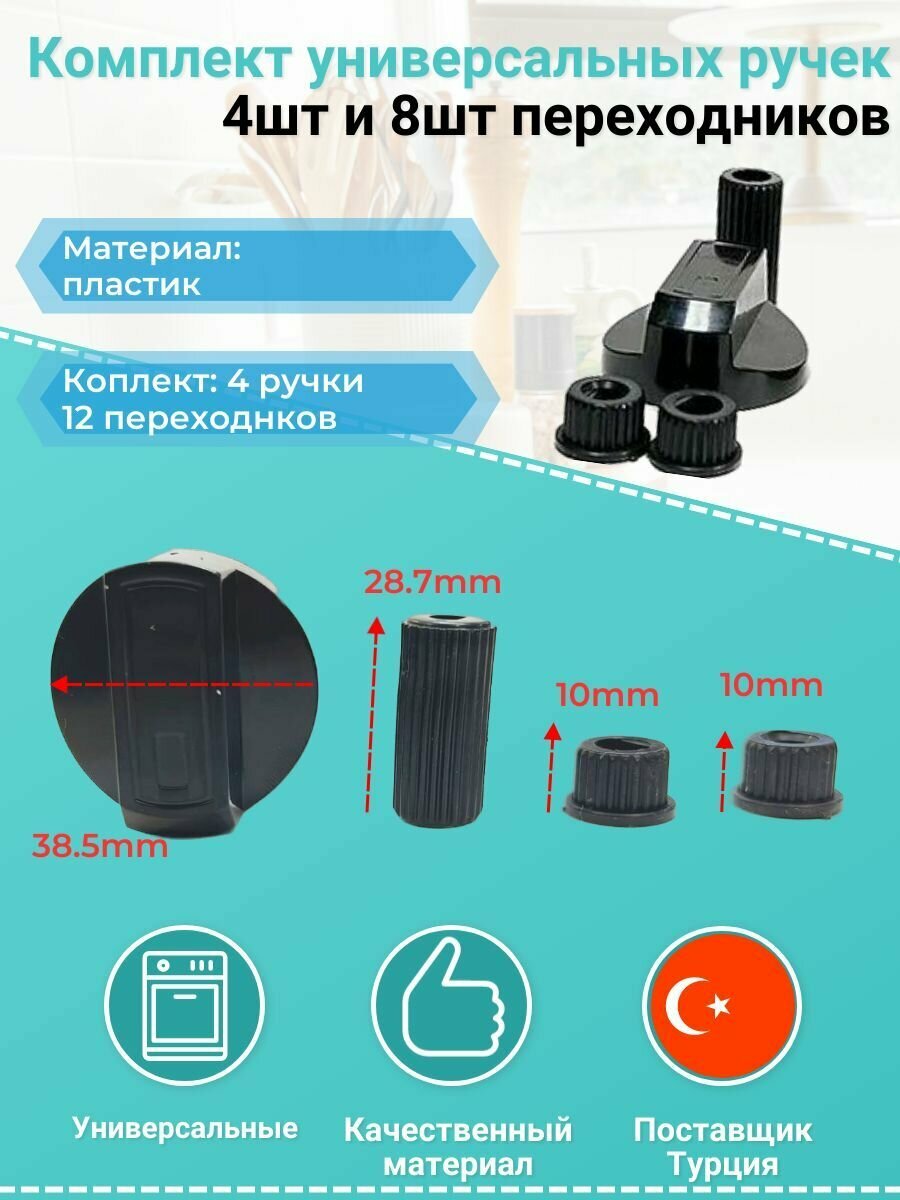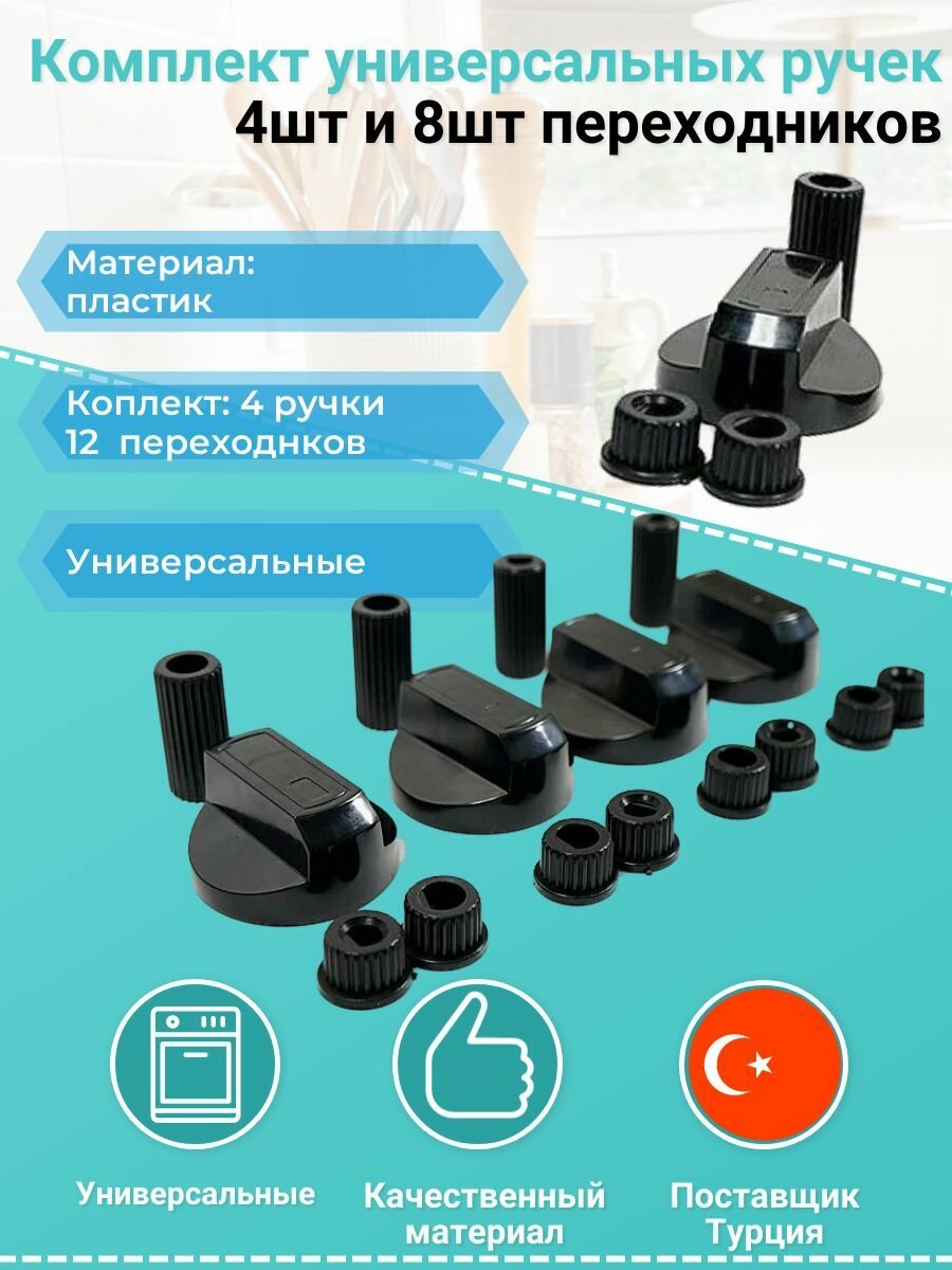 Универсальные ручки регулировки для плиты черного цвета с переходниками