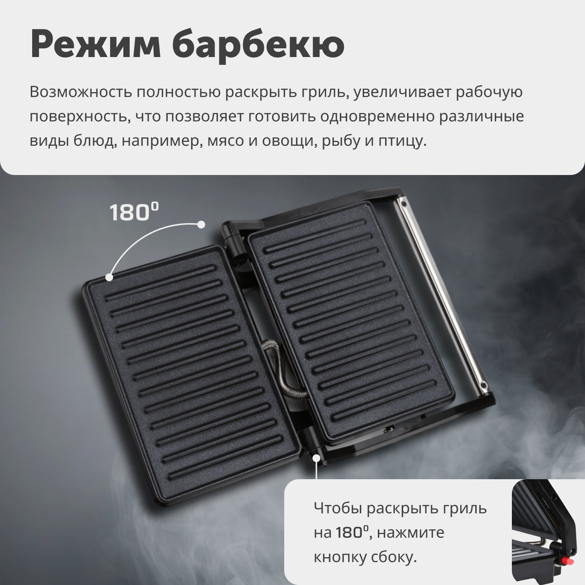 Электрический мини-гриль с режимом барбекю и антипригарным покрытием, 750 Вт, черный интересное: