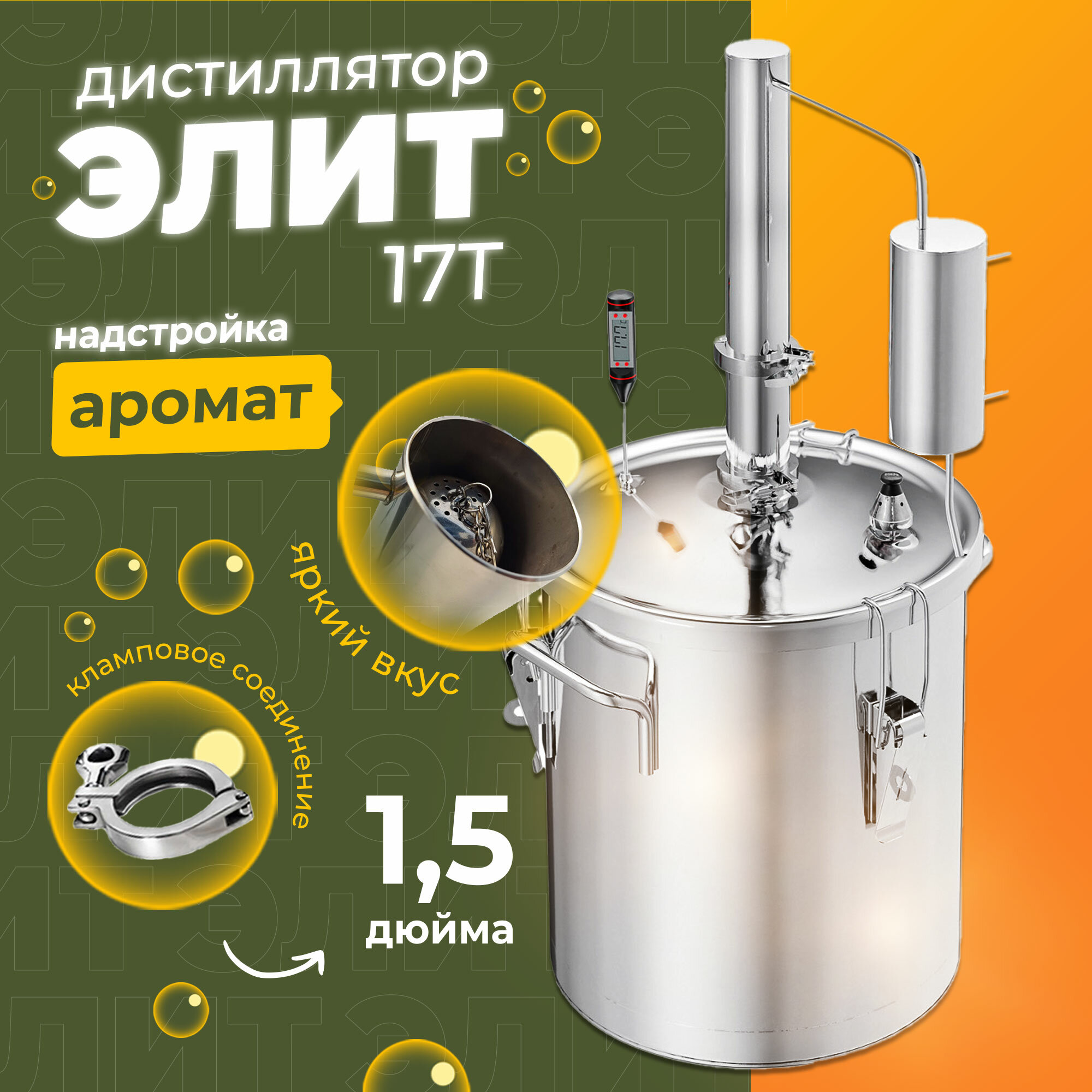 Дистиллятор первач (Самогонный аппарат) Элит Аромат 17Т 17л, нержавеющая сталь, проточный с сухопарником, термометр