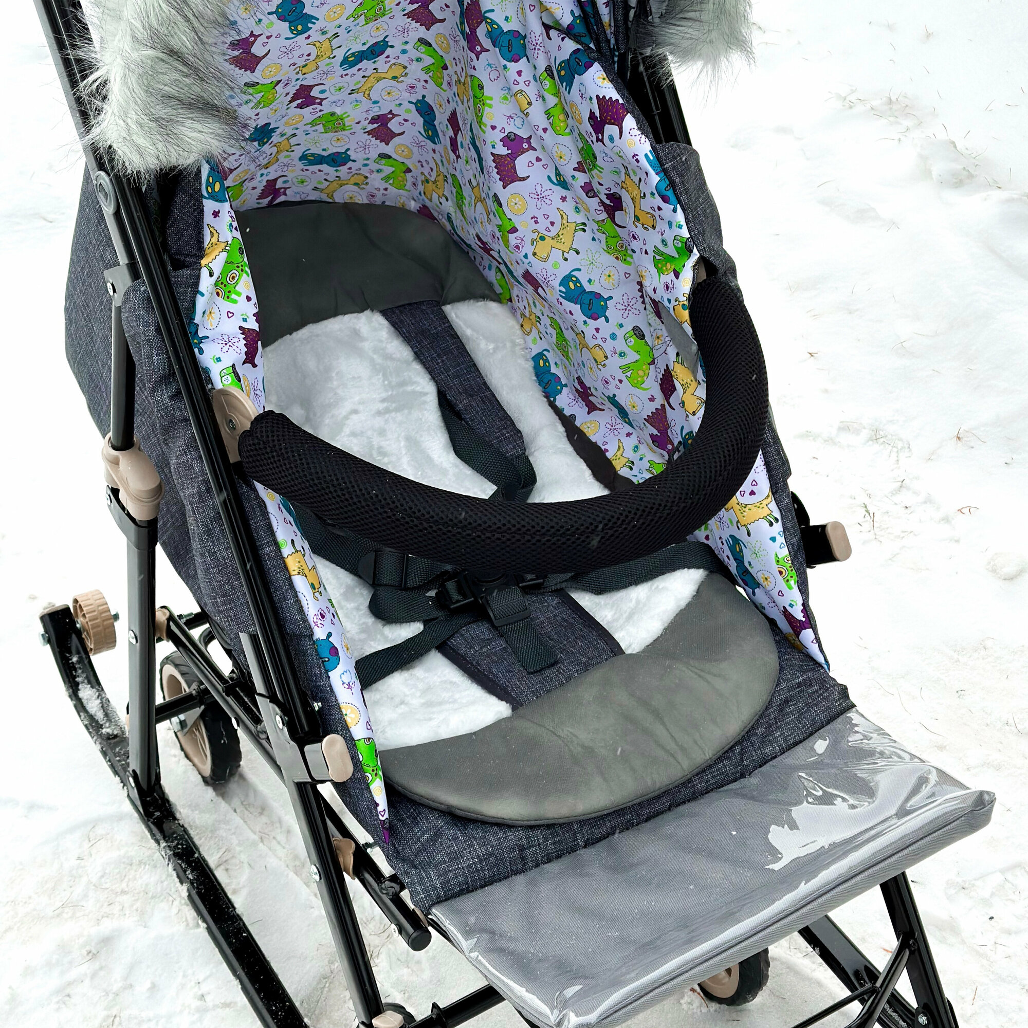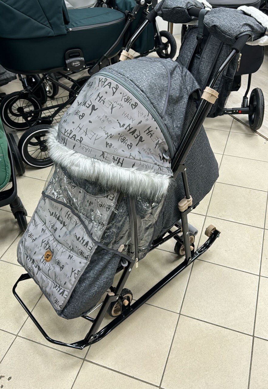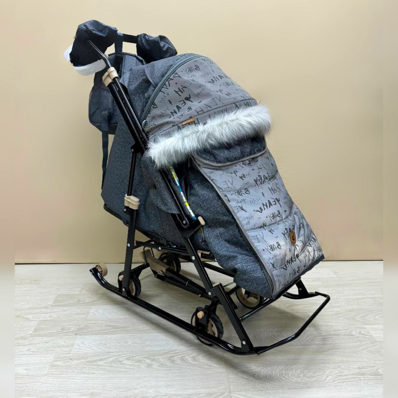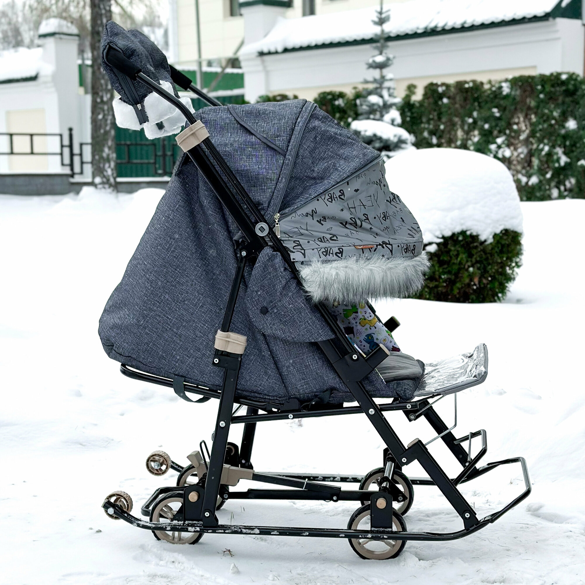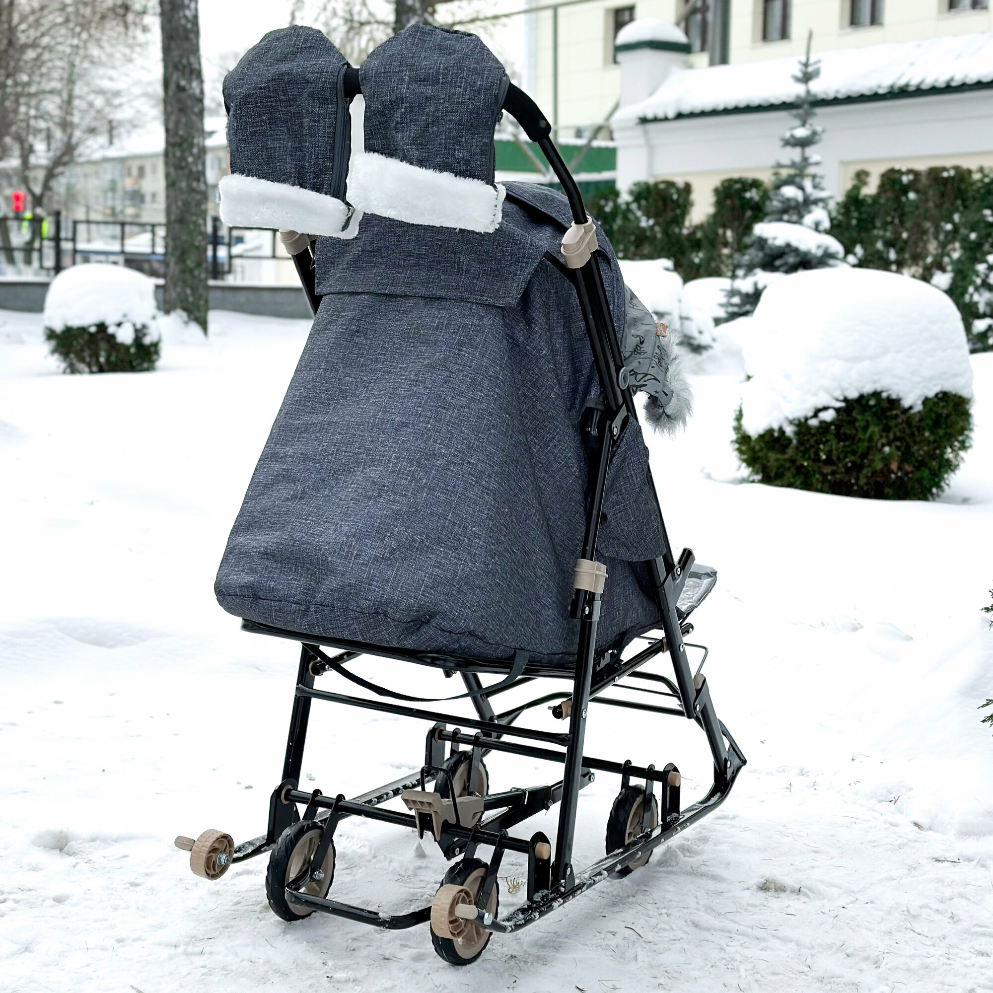 Купить Санки-коляска Galaxy Glory Gloss Лен Черные, Светоотражающая Ткань