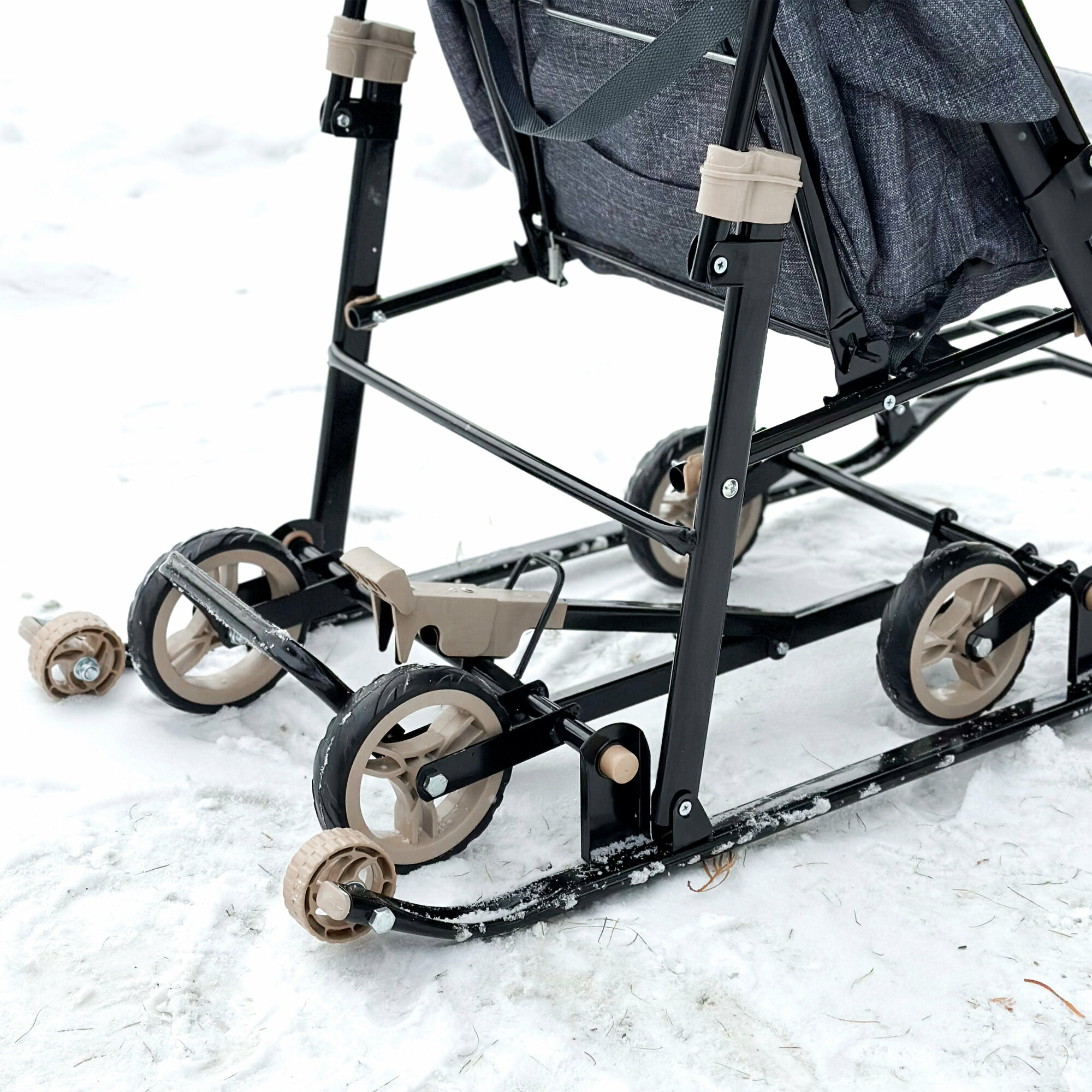 Санки-коляска Galaxy Glory Gloss Лен Серо-Коричневые, Светоотражающая Ткань