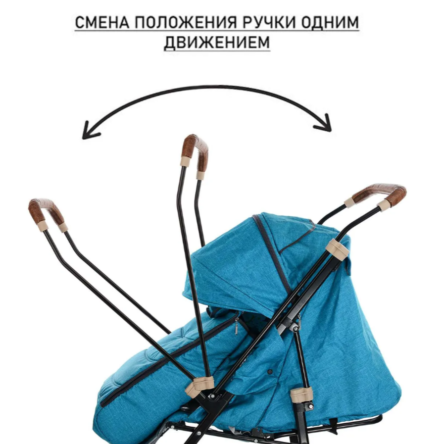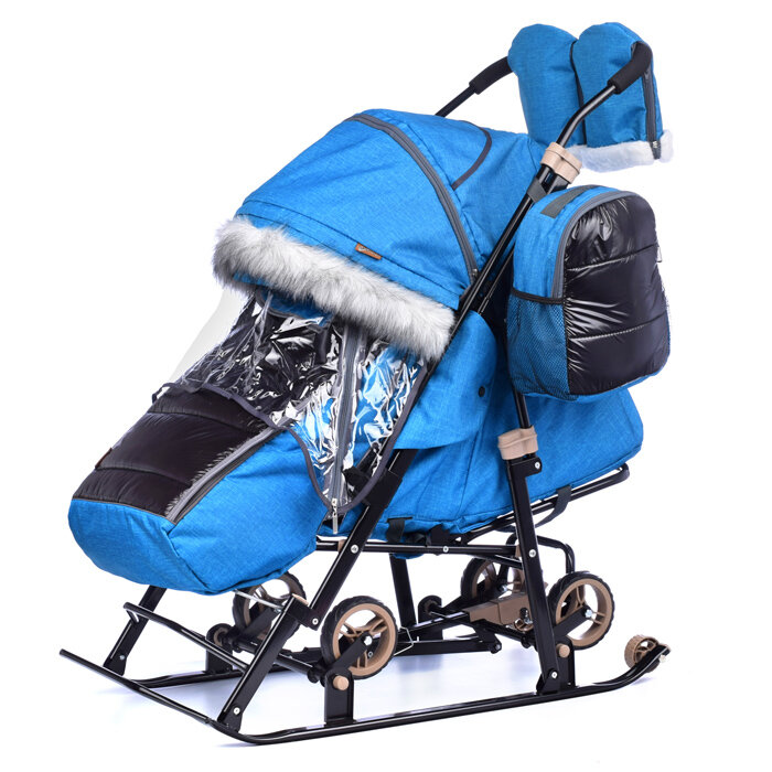 Санки-коляска детские с выдвижными колесами, варежками и сумкой GALAXY "Glory gloss" (лен бирюзовый) интересное: