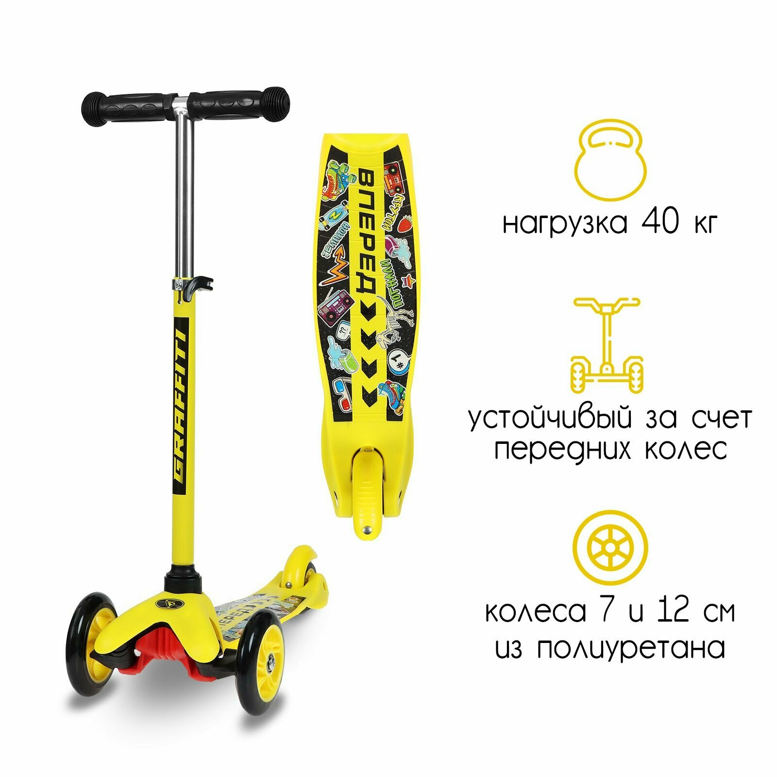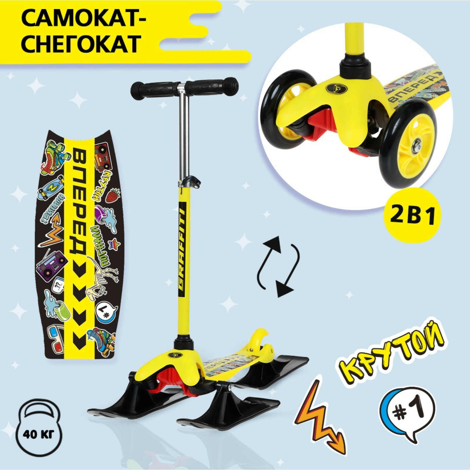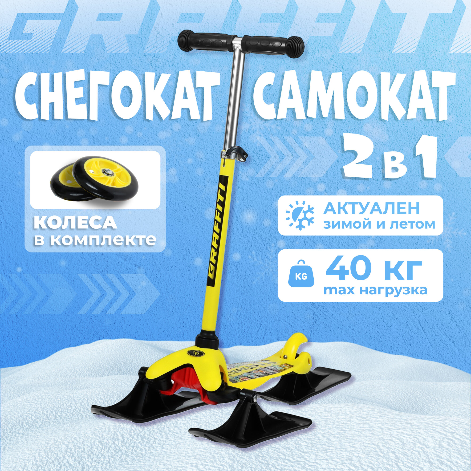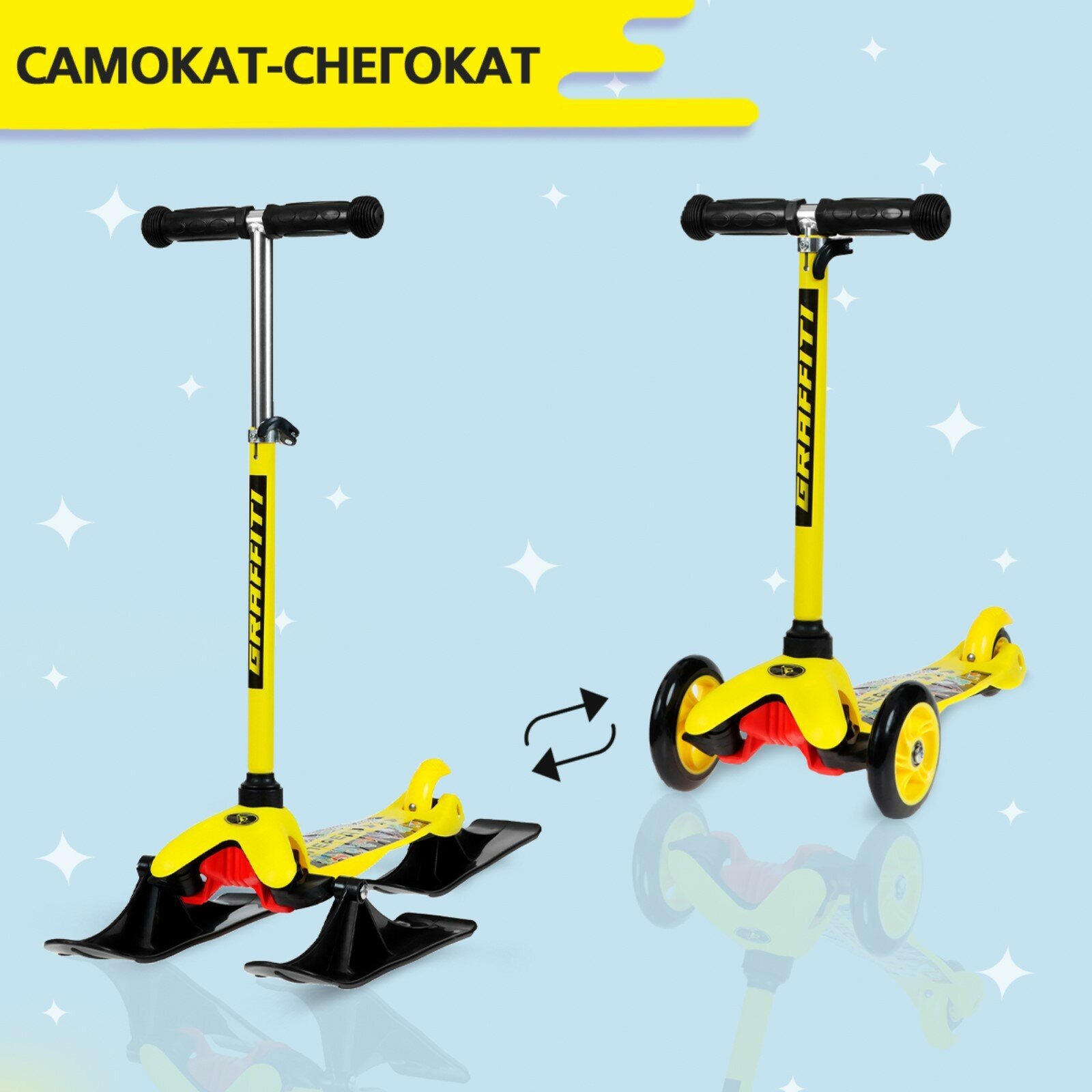 Самокат-снегокат 2 в 1 GRAFFITI "Вперед", цвет желтый, черный