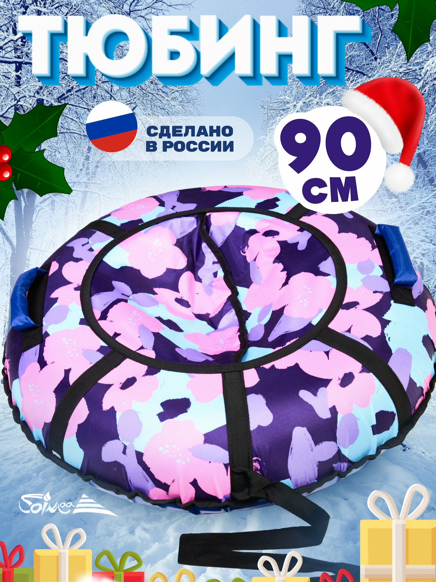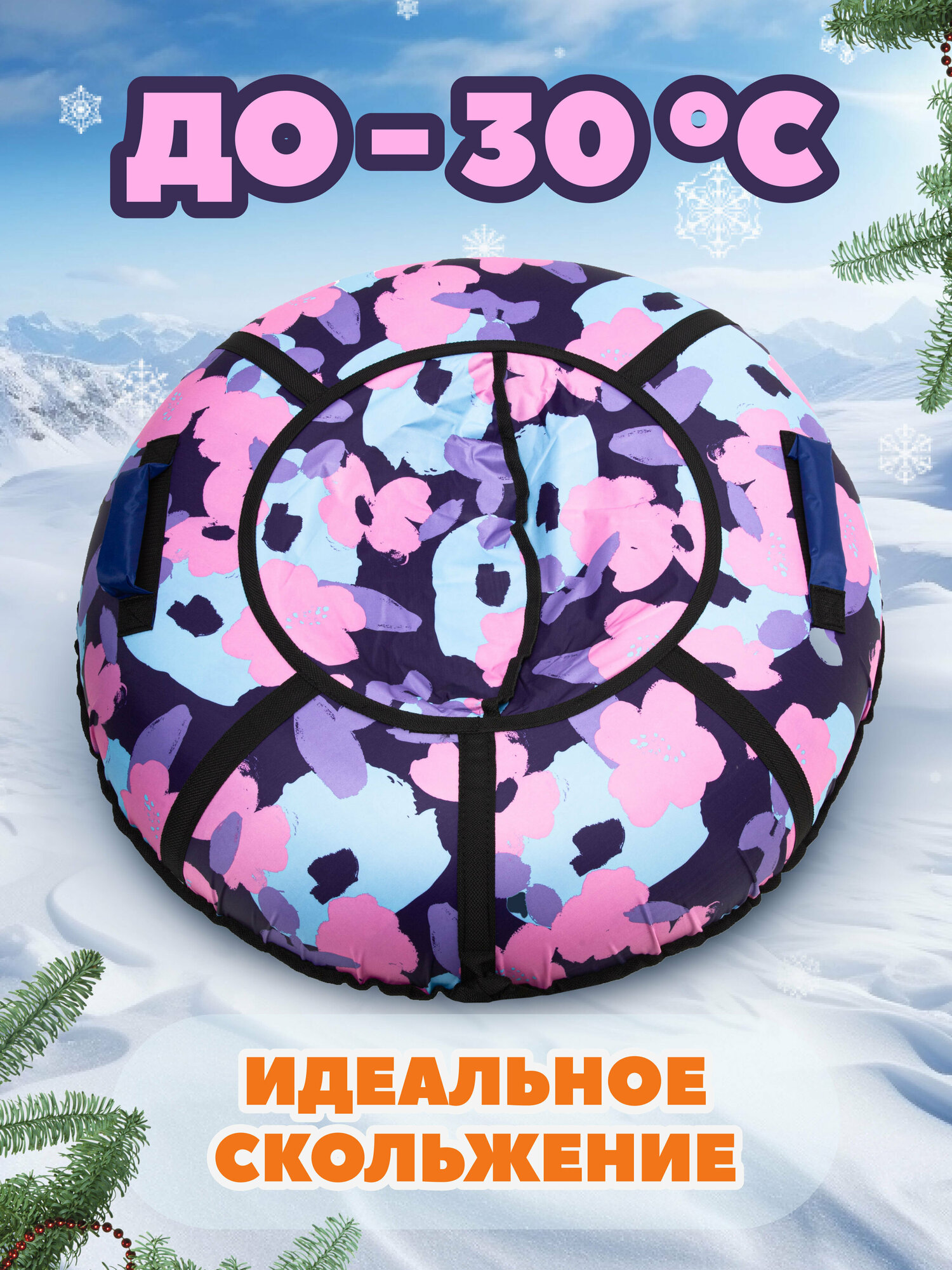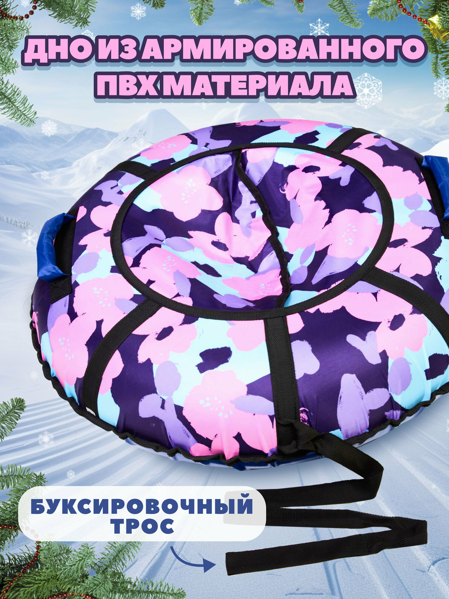Купить Ватрушка тюбинг плюшка для катания Saimaa "Цветы" 90 см с мягкими ручками