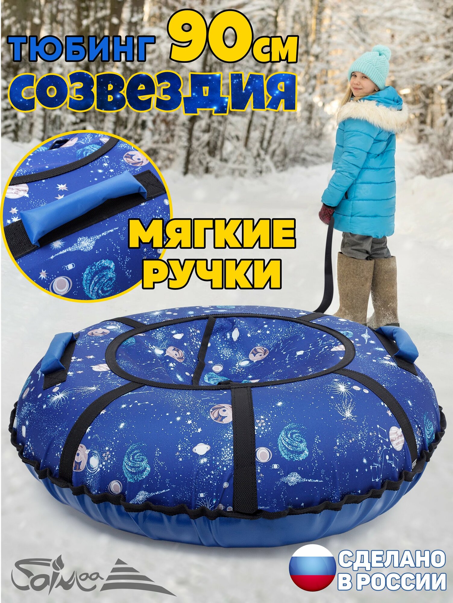 Купить Ватрушка тюбинг плюшка для катания Saimaa "Созвездие" 90 см с мягкими ручками