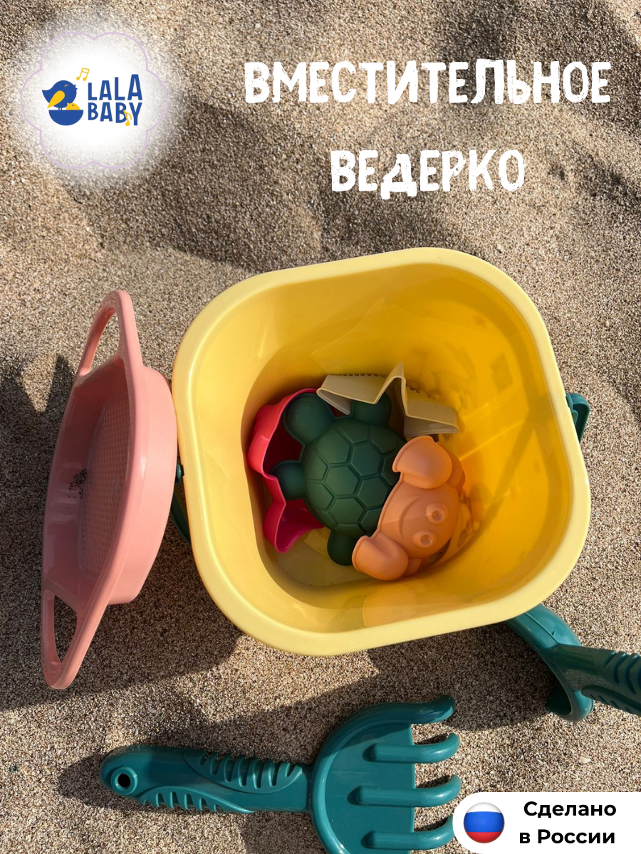 Песочный набор. Ведерко, сито, совочек, грабельки, 4 формочки LA115512573 Lalababy 9610325