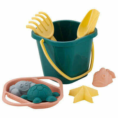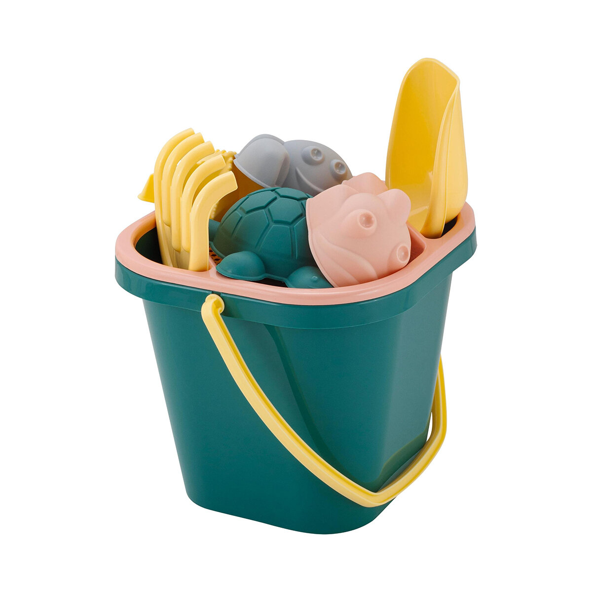 Песочный набор (ведерко, сито, совочек, грабельки, 4 формочки) зеленый