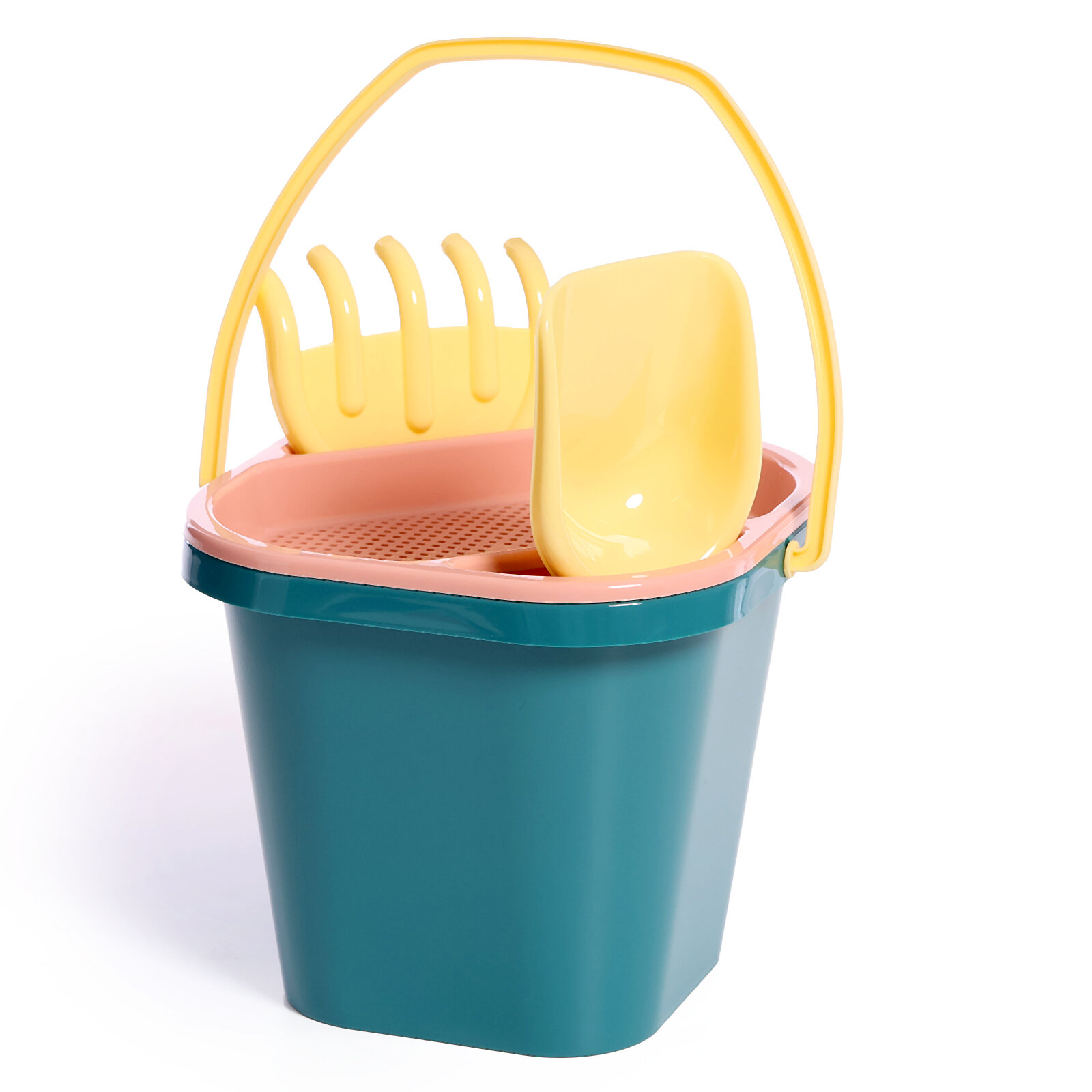 Купить Набор для игры в песке Изумрудный город: ведерко, сито, совочек, грабли, 4 формочки