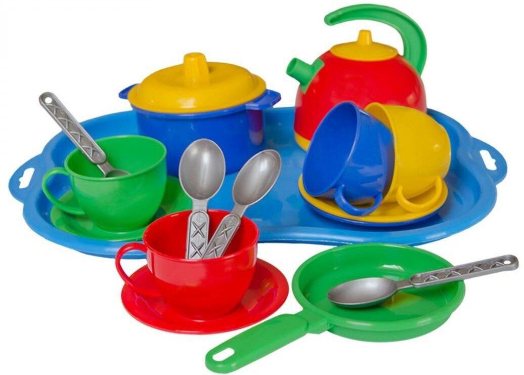 | Комплектация | 4 чашки, 4 блюдца, 4 ложки, чайник с крышкой, сковородка, кастрюлю с крышкой, поднос |