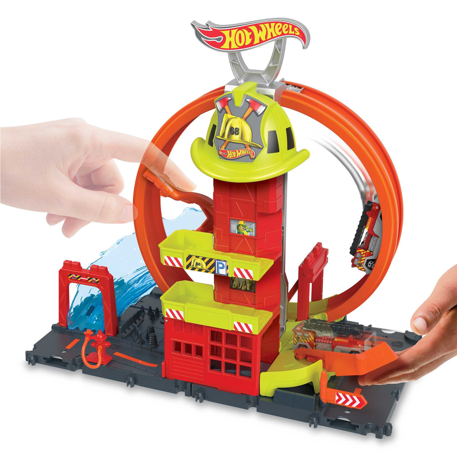 Пожарная станция для автомобильного трека Hot Wheels City Super Fire Station с петлей + машинка