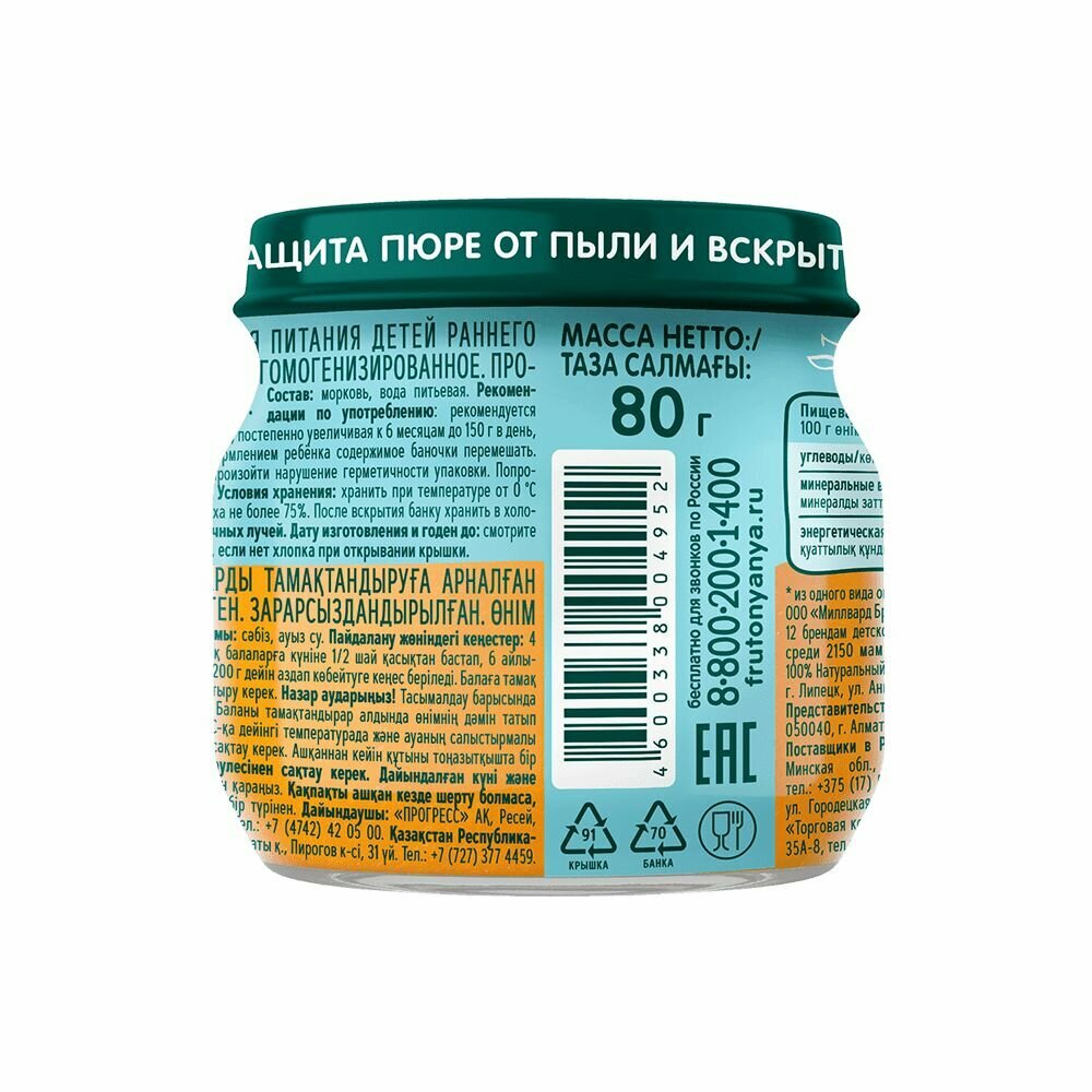 Пюре детское из моркови ФрутоНяня 80г 3 шт интересное: