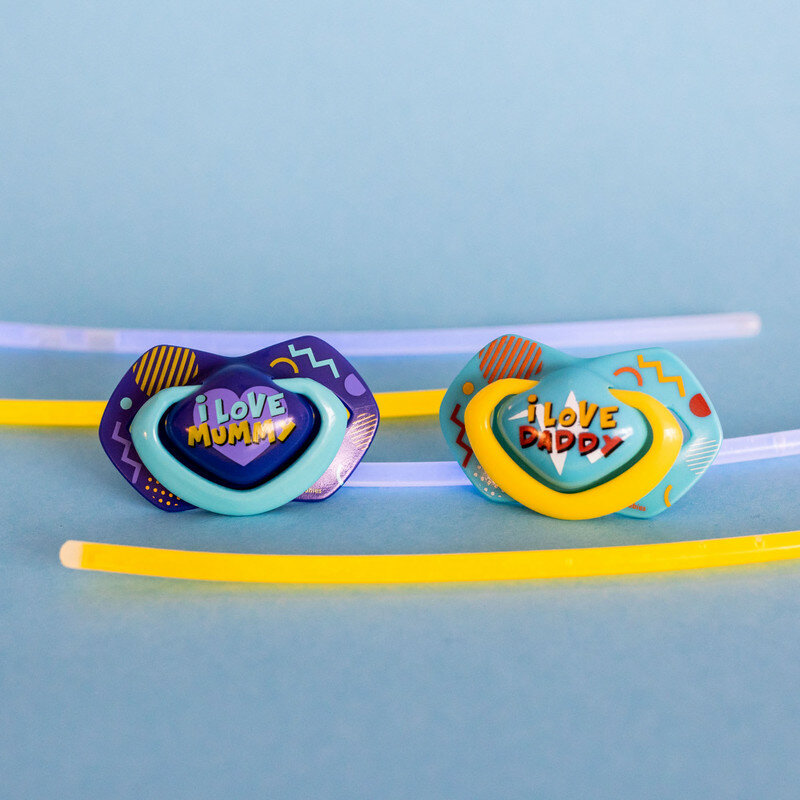 Купить Пустышки Canpol babies Neon Love 0-6 мес, 2шт с футляром, голубой/фиолетовый