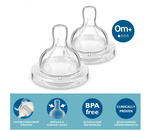 Соска для бутылочки Anti-colic 0+ мес., 2 шт. SCY761/02
