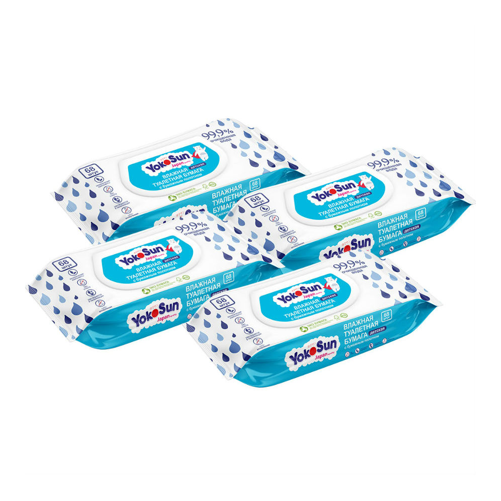 Детская влажная туалетная бумага "YokoSun""Megabox", 4 упаковки по 68 шт,