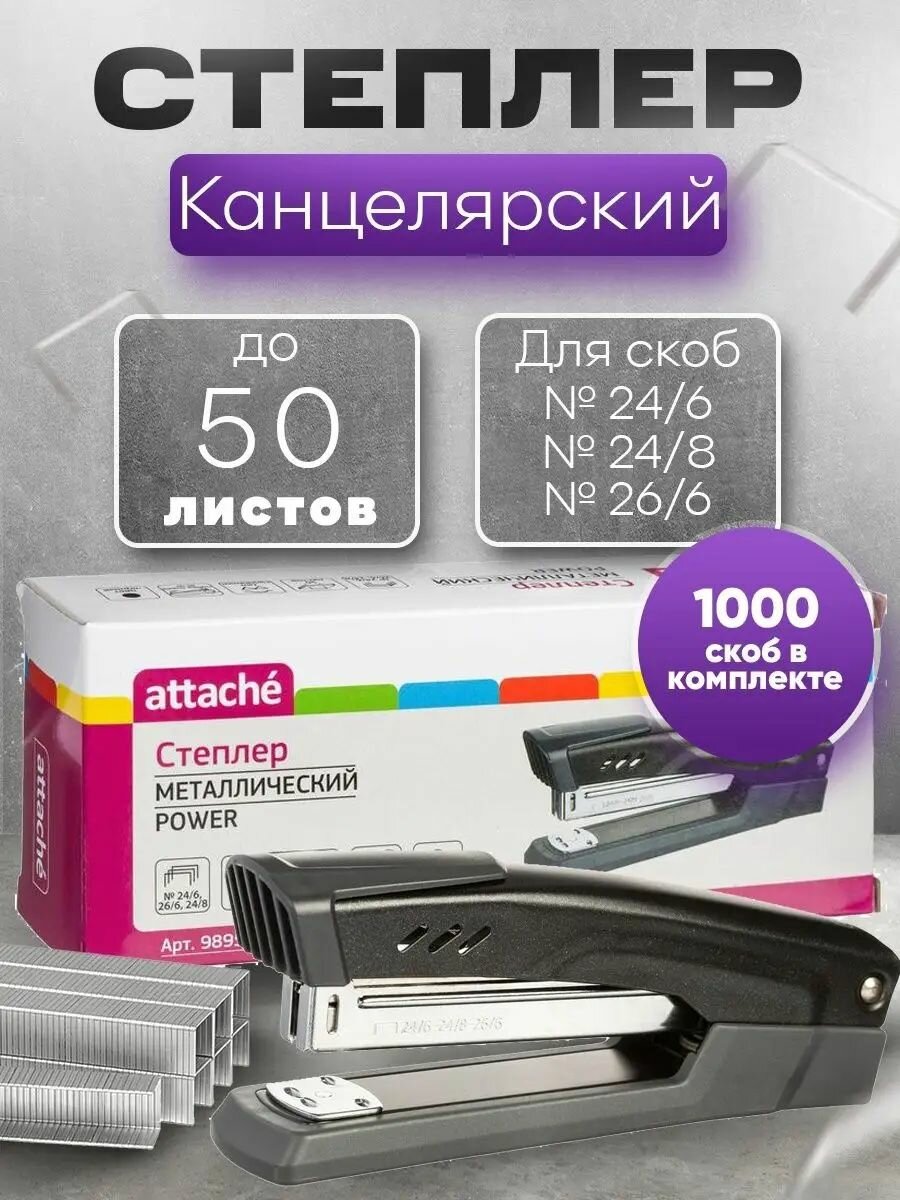 Степлер Attache Power №24/6-26/6-24/8 до 50л., металл., черный интересное: