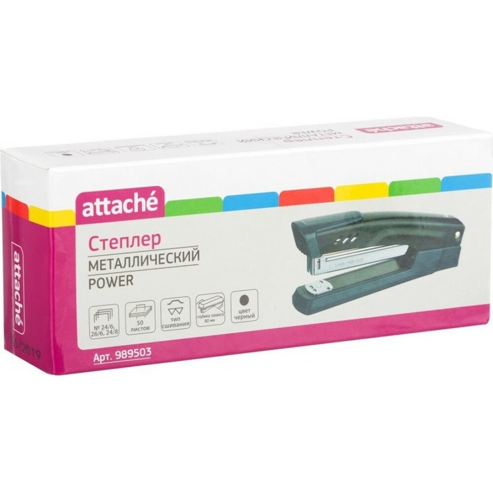 Степлер Attache Power №24/6-26/6-24/8, до 50 листов, металл, черный 989503
