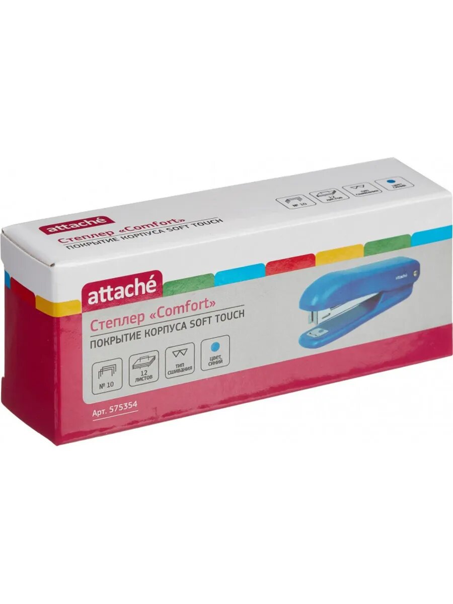 Степлер Attache Comfort до 12 лис., soft touch покрыт, синий,№10 антистеп 575354