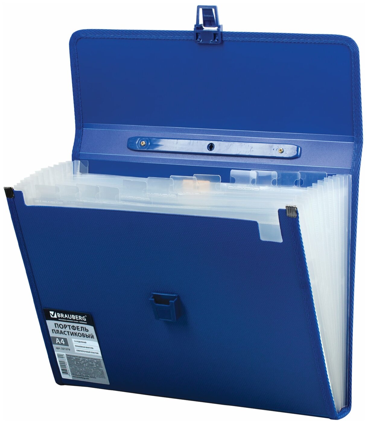 Купить Папка-портфель пластиковая BRAUBERG А4 (332х245х35 мм), 13 отделений, синяя, 221379