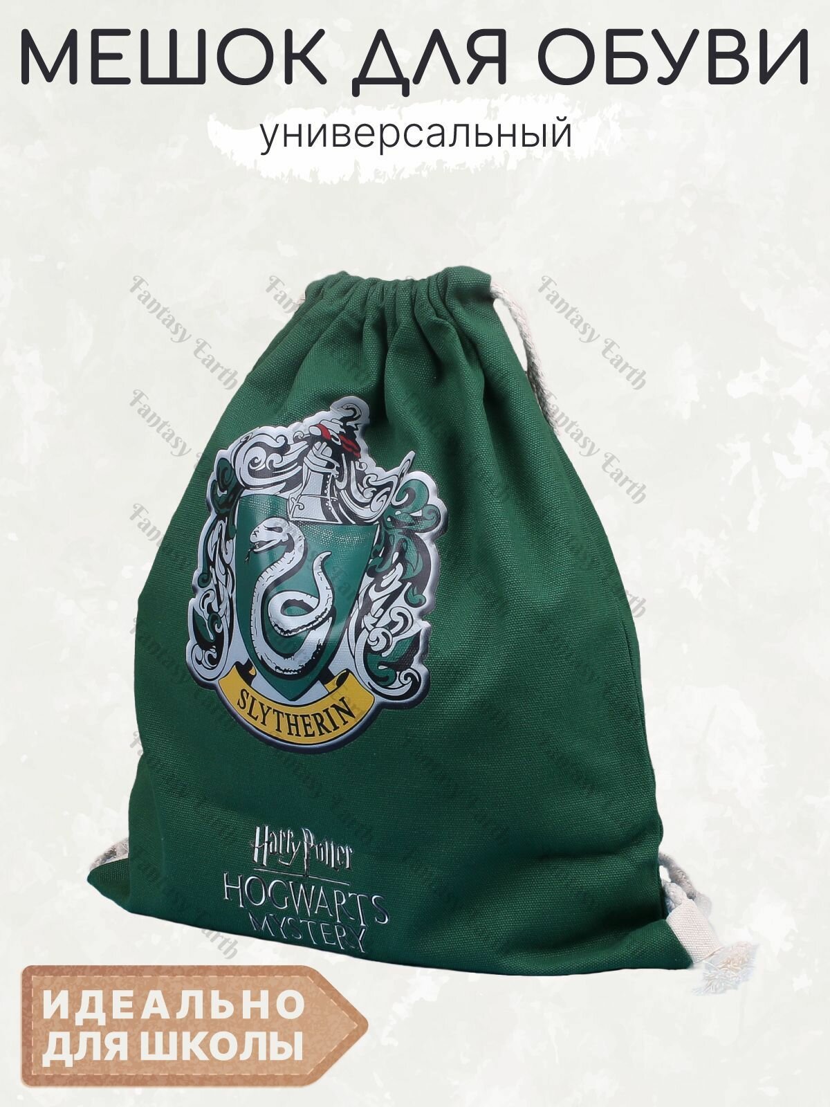 Сумка для сменки Fantasy Earth Слизерин, цвет зеленый / Мешок для сменной обуви / Хогвартс / Гарри Поттер