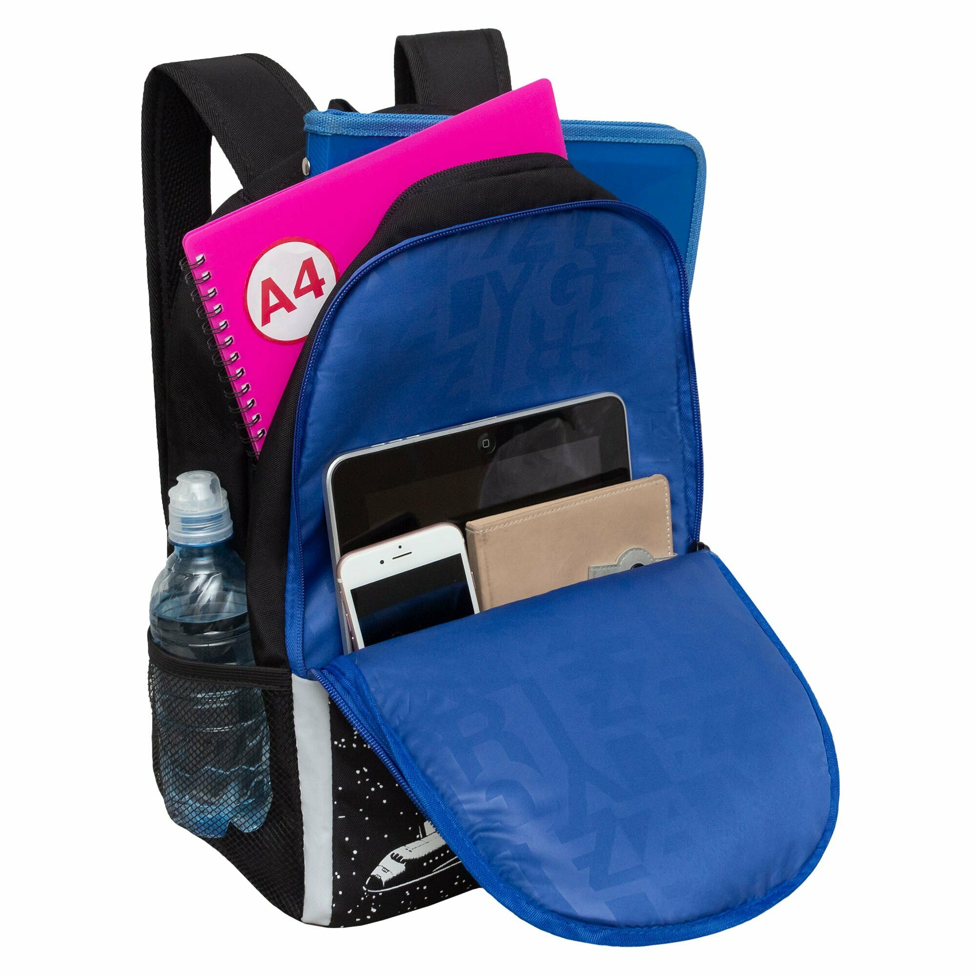 Школьный рюкзак GRIZZLY RB-451-1 черный, 29х38х16